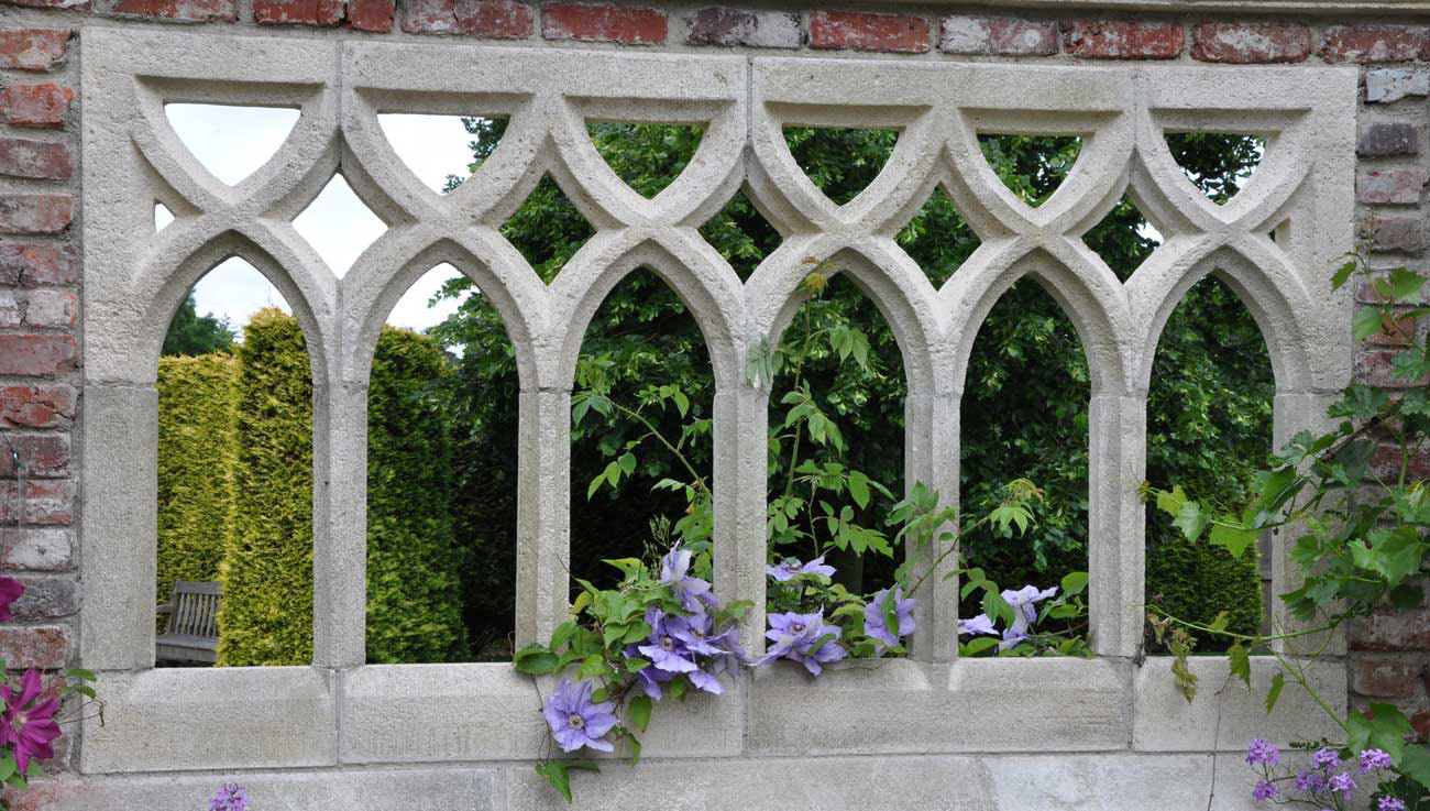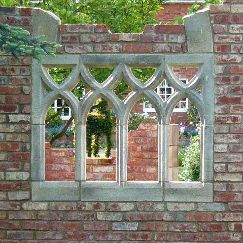 XXL Fenster mit Spitzbögen für Gartenruinen aus Steinguss - King Heawood / 115,0x212,4x10,0cm (HxBxT); 240kg