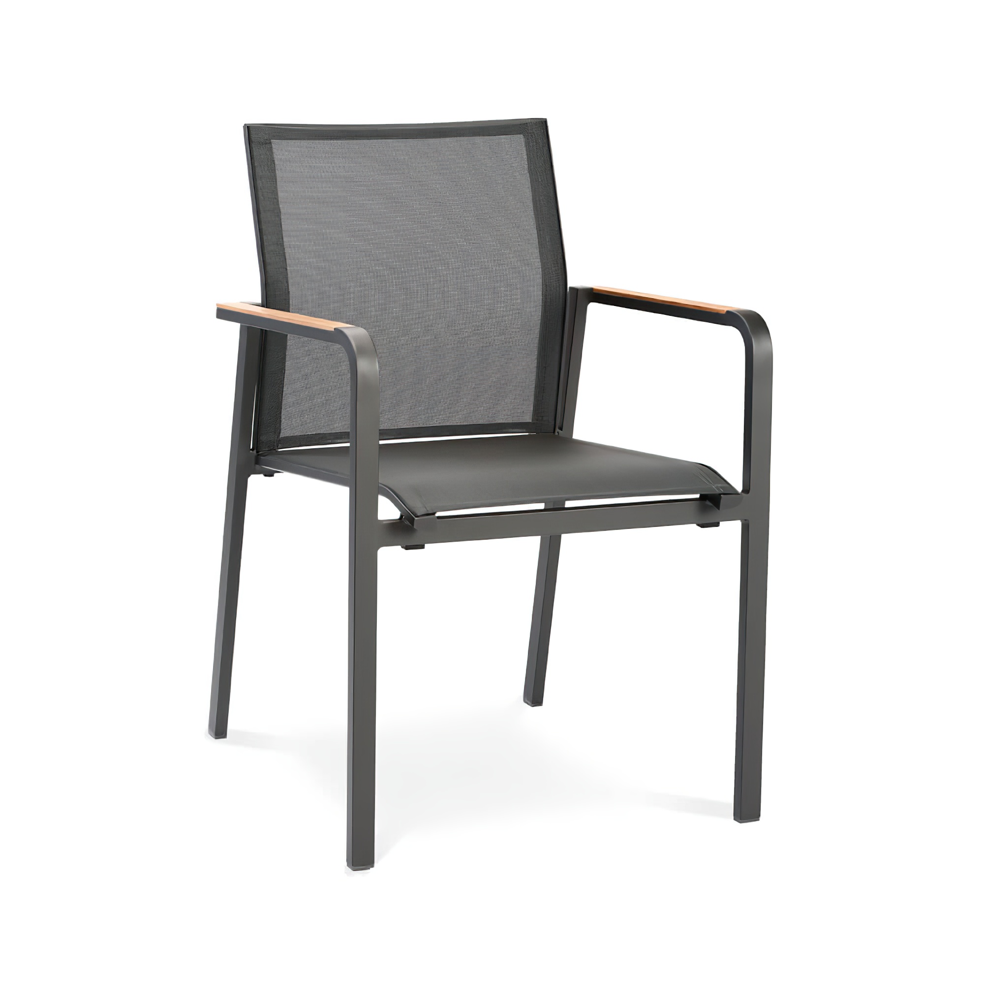 I nostri mobili da giardino di alta qualità si distinguono per la loro grande resistenza agli agenti atmosferici. Che siano posizionati sul balcone, sulla terrazza o nel giardino, il set da seduta colpisce per il suo design elegante. Le superfici di seduta e schienale sono realizzate in Ergotex traspirante, un poliestere che garantisce comfort, durabilità , traspirabilità e resistenza all'acqua. La struttura leggera in alluminio inox facilita la movimentazione ed è verniciata a polvere in vari colori. I braccioli sono valorizzati da robusto legno di teak con patina naturale.