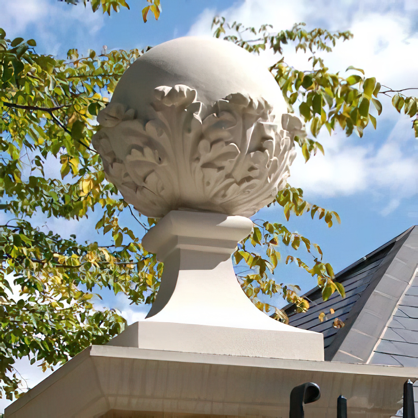 Antik Pfeilerabdeckung mit Stein Kugel - Acanthus / Sand