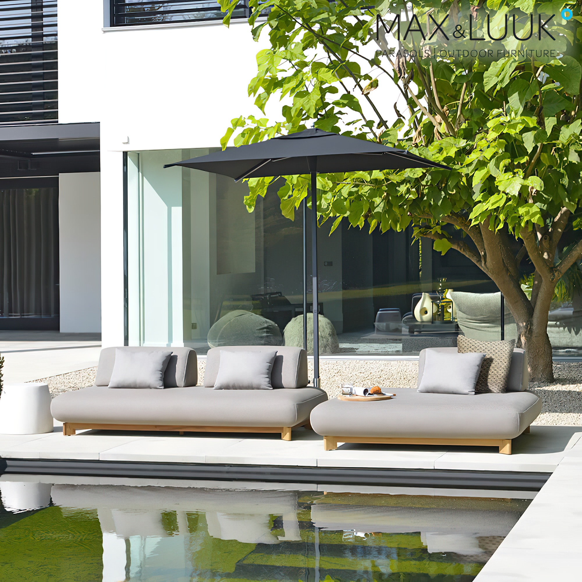 La struttura di base di questi mobili lounge del produttore Max & Luuk è realizzata in legno di teak. All'aperto, il legno cambia tonalità nel tempo diventando grigio argento, poiché i pigmenti nella superficie si attenuano. Ogni pezzo di teak è un prodotto naturale con una struttura unica. A causa degli agenti atmosferici, delle forti variazioni di temperatura o dei cambiamenti nell'umidità del legno, possono comparire delle crepe. Questo "restringimento" è un processo naturale che non influisce sulla qualità del mobile da giardino. Tre o quattro volte all'anno si consiglia di pulire il legno con un detergente specifico per teak. L'uso di idropulitrici non è raccomandato. Con un protettore per teak, il legno può essere preservato da macchie, ad esempio di cibo o bevande. Durante l'inverno, i mobili in teak possono essere conservati in un luogo asciutto.