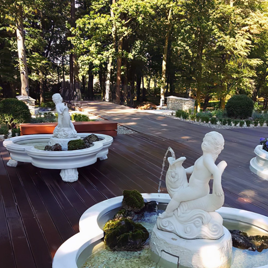 La fontana da giardino è realizzata in pietra artificiale di alta qualità, composta tra l'altro da quarzo, calcare e feldspati. Ogni fontana è dipinta a mano, creando sfumature di colore uniche. Ogni gioco d'acqua è un pezzo unico, che grazie a materiali pregiati e a una lavorazione professionale garantisce un'eccellente resistenza agli agenti atmosferici. La pietra ricostruita resiste sia alle temperature elevate che a quelle rigide e possiede una capacità di auto-riparazione: ciò significa che le microfessure si chiudono spontaneamente in un ambiente naturale. La decorazione viene fornita con una finitura semi-lucida nel colore da voi scelto.