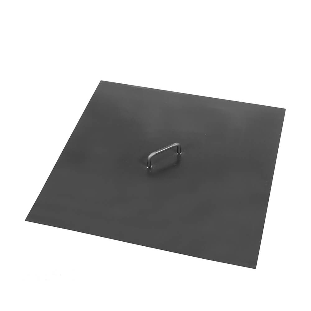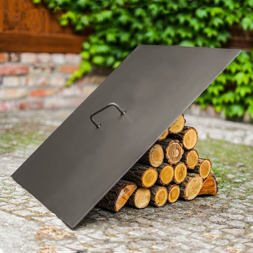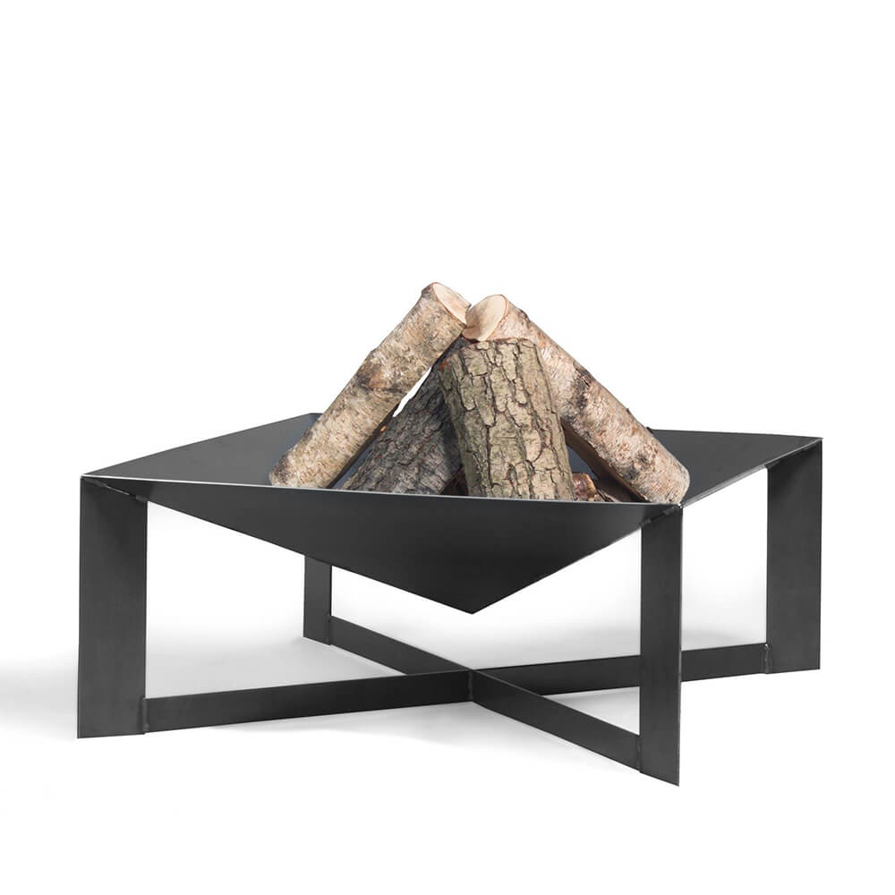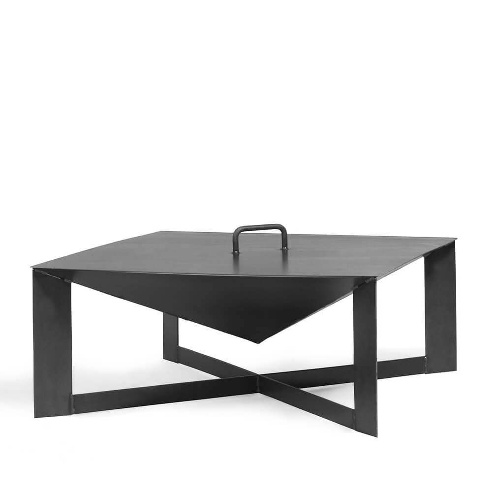 Eckige Feuerschale mit gekreuzten Beinen als Feuerstelle - Pyramide - Efty Feuerschale / Abdeckung - ein Griff