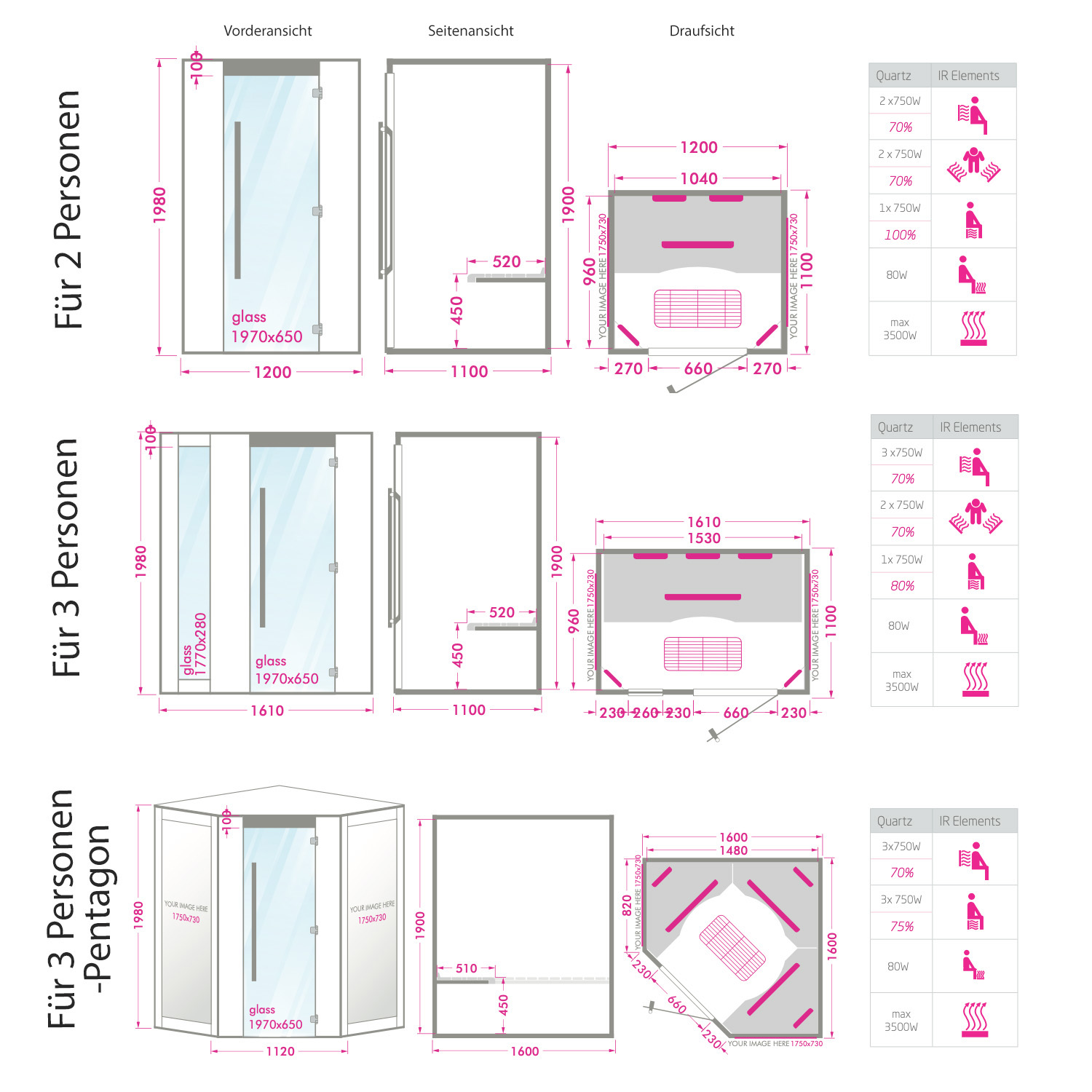 Farbige Indoor Infrarotsauna mit Bild für zu Hause - vollausgestattet - Basteta / für 2 Personen