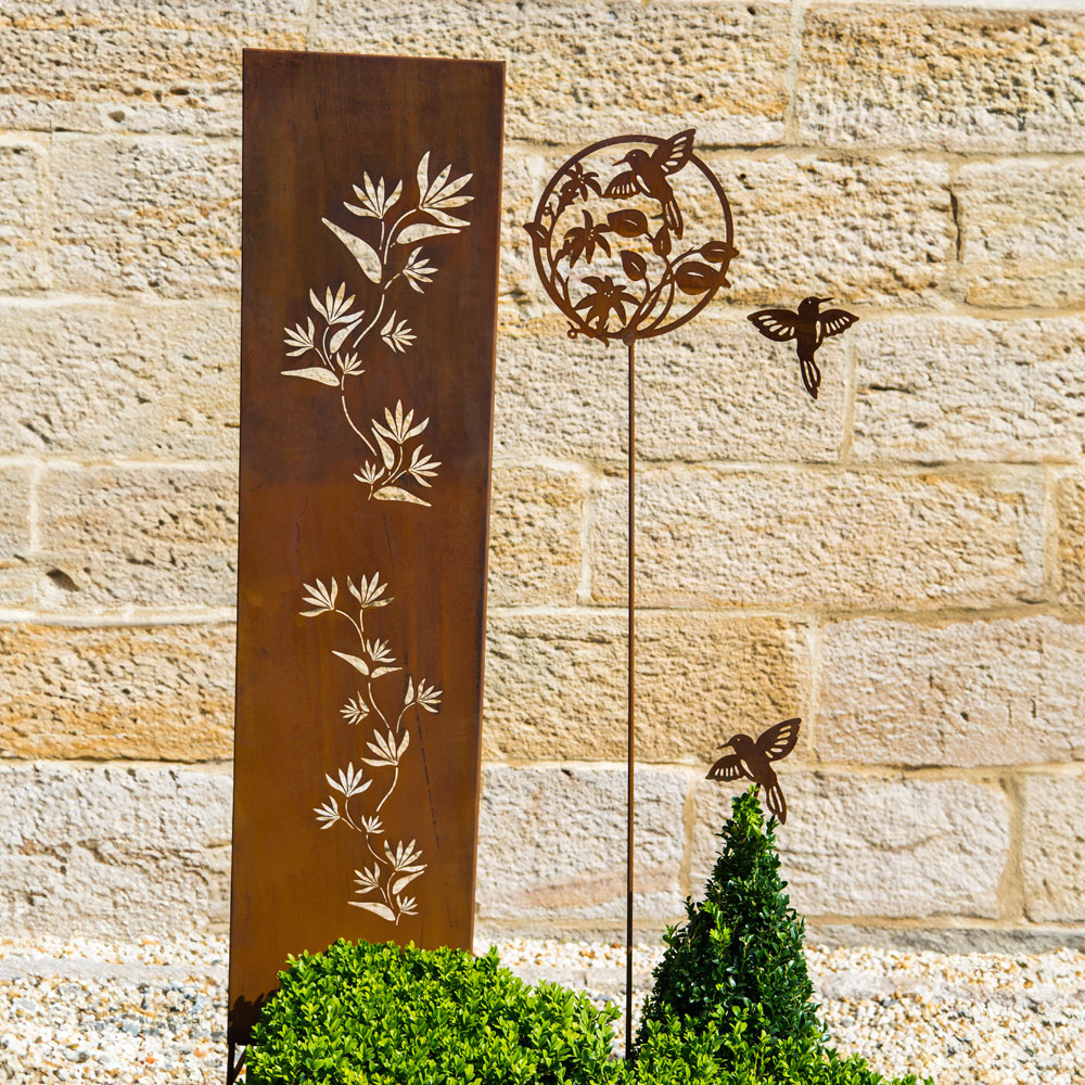 - È normale che la ruggine possa causare delle macchie. Proteggete quindi pavimenti in pietra, piastrelle o lastre per terrazze con un supporto adeguato, come un sottobicchiere in sughero o del sughero tagliato su misura. Questo ha il vantaggio di essere poco visibile grazie alla somiglianza cromatica. Per figure più piccole da posizionare sul davanzale o su superfici in legno, potete utilizzare anche il feltro.