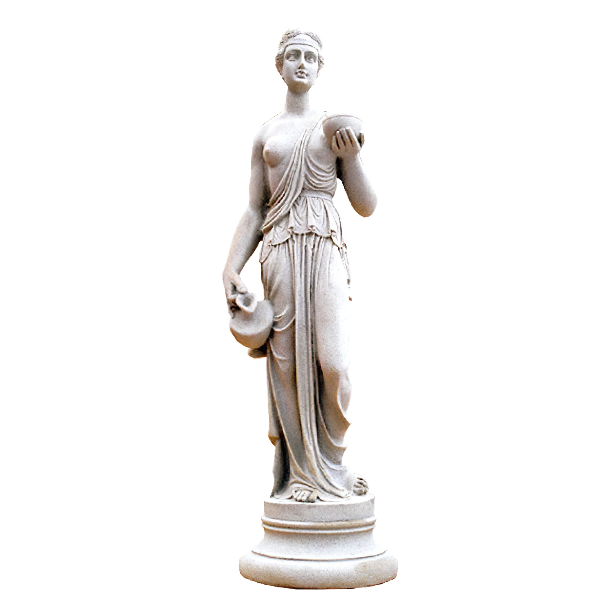 Frauenstatue mit Krügen auf Sockel - Steinguss Gartenfigur - Tayan / Sand