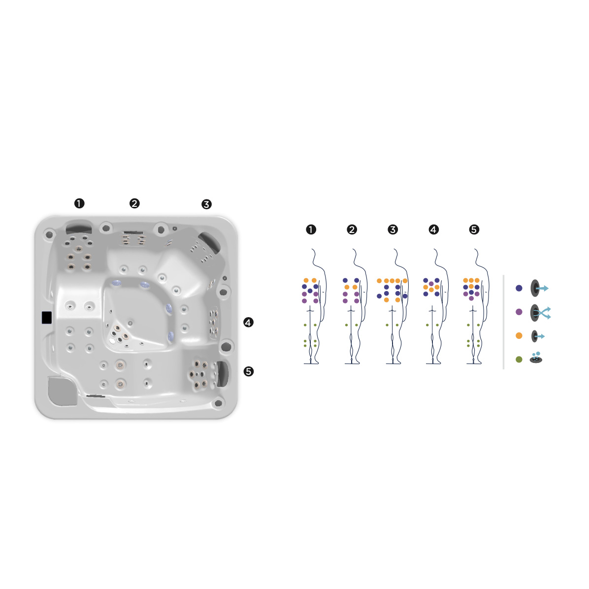 Il Jacuzzi è dotato di un equipaggiamento completo, efficiente dal punto di vista energetico, con tecnologia innovativa e design moderno. Ecco una panoramica delle dotazioni standard: