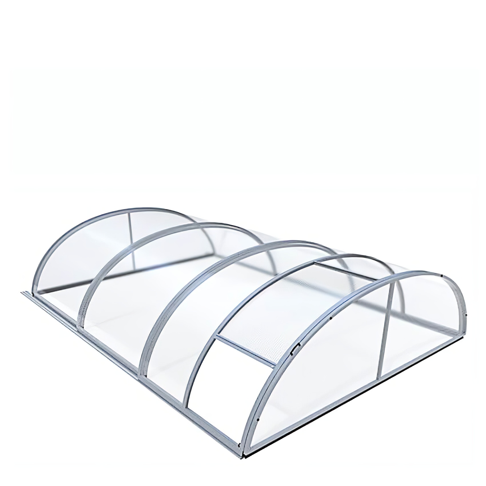 Questa copertura per piscina, con un'altezza di 132 cm, una larghezza di 854 cm e una profondità di 380 cm (dimensioni interne), presenta un tetto arcuato standard e una porta chiudibile senza soglia nel segmento anteriore. Le pareti frontali e posteriori della copertura sono rimovibili. I profili portanti in alluminio anodizzato color argento di questa solida copertura sono resistenti all'usura. Per la vetratura utilizziamo pannelli alveolari in policarbonato, robusti e dotati di filtro UV su entrambi i lati, con uno spessore di 10 mm, fissati ai profili con sigillante siliconico. Nel pacchetto sono incluse guide scorrevoli pedonabili su entrambi i lati e prolunghe da 210 cm. Su richiesta, offriamo anche una serratura adatta per la porta.