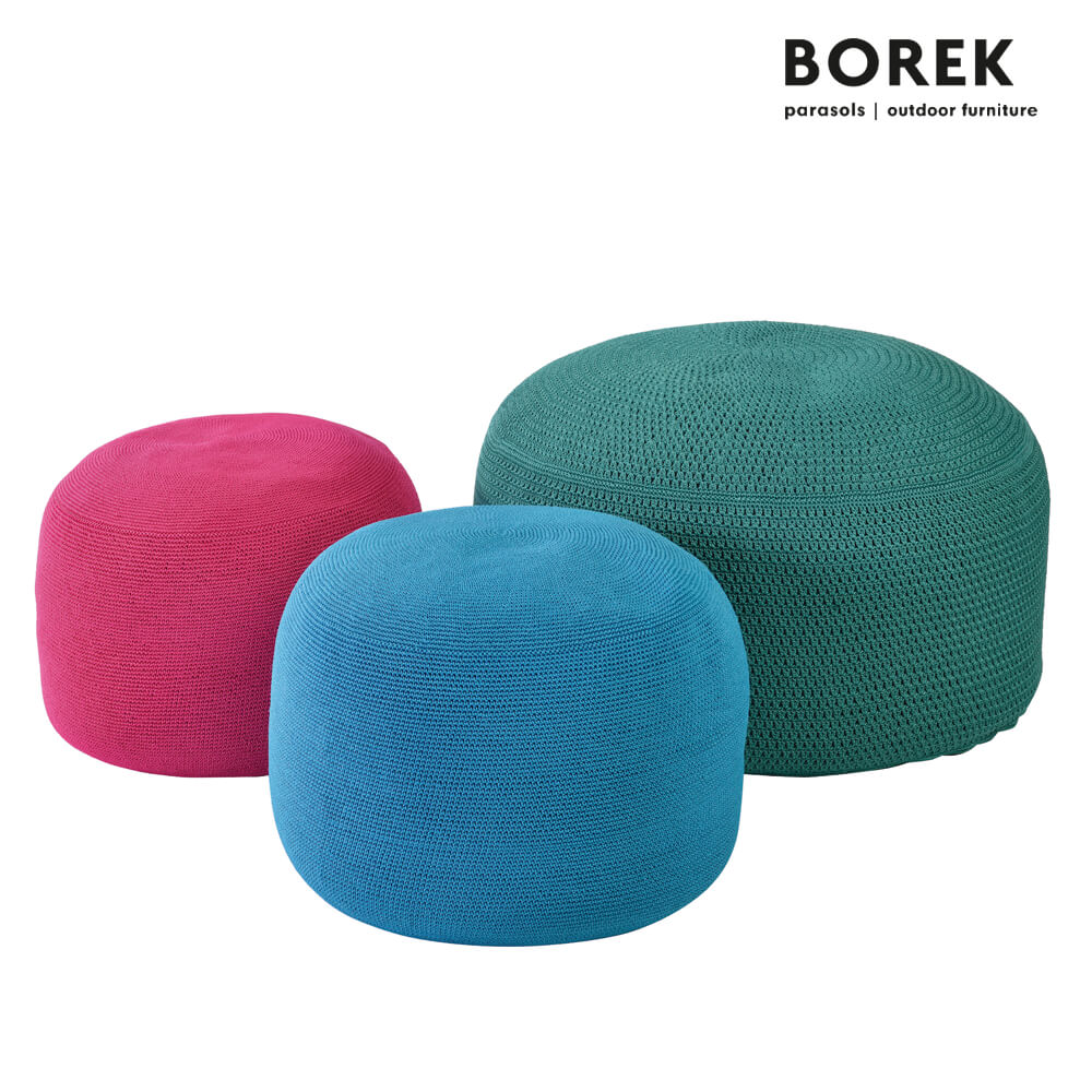 Lo sgabello da giardino moderno CROCHETTE, prodotto dal rinomato marchio olandese BOREK, si distingue per la sua lavorazione di alta qualità e i colori accattivanti. Il pouf turchese è realizzato in corda Ardenza, una plastica termoplastica dall'aspetto molto naturale. Il materiale utilizzato è resistente all'acqua e allo sporco, stabile ai raggi UV e mantiene a lungo il colore. Un cuscino da terra è il complemento ideale per un angolo lounge confortevole con divano da giardino e tavolino da caffè, e si presenta perfettamente anche come seduta sull'erba.
