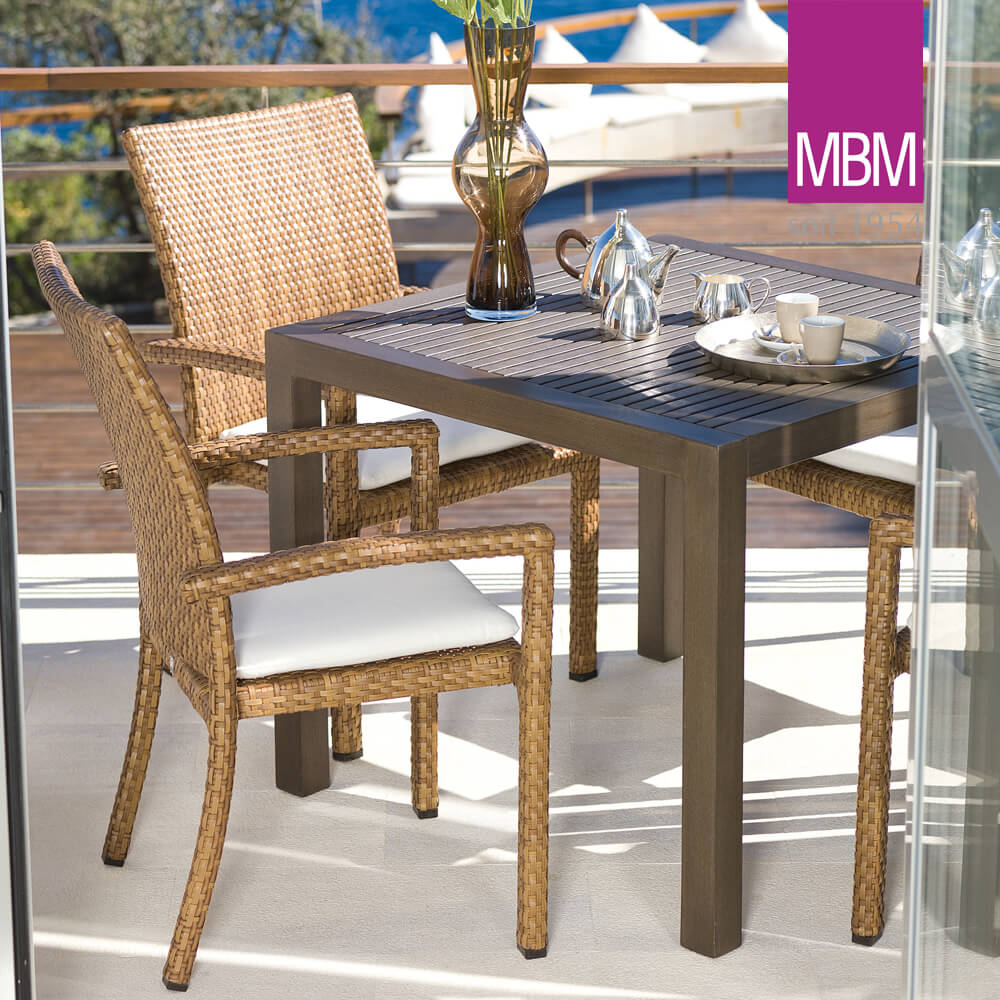 Garten Stapelstuhl von MBM - Alu & Polyrattan - mit Armlehnen - Sessel Bellini / ohne Sitzkissen