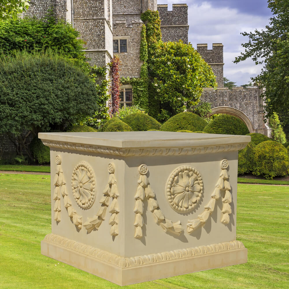 Questa grande base storica in pietra per il giardino viene realizzata in un laboratorio artistico tradizionale in Inghilterra. Il materiale utilizzato è una pregiata pietra stampata, resistente al gelo e agli agenti atmosferici. Che sia un vaso per piante o una scultura da giardino, con questa splendida base metterete in risalto ogni oggetto nel modo migliore.