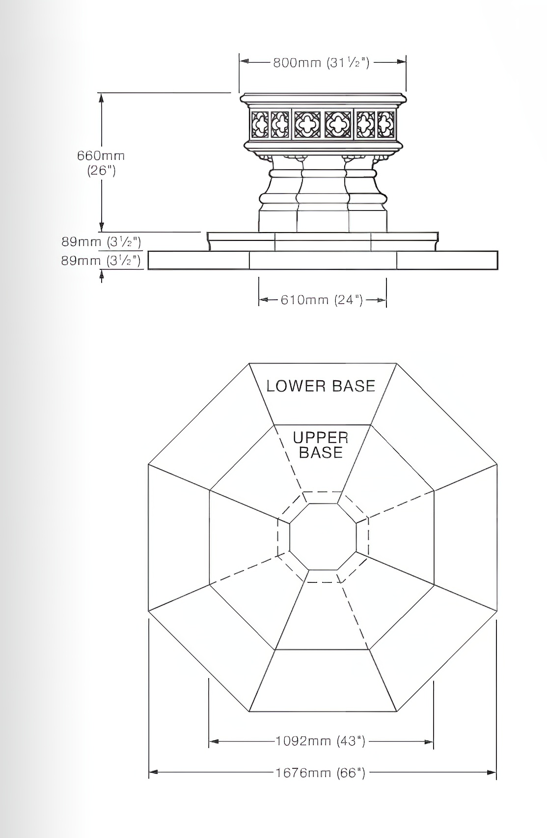 Questa raffinata base è perfetta per elevare fontane da giardino di stile, mettendole così ancora più in risalto. La base ottagonale, realizzata in resistente pietra inglese, si distingue per il suo design gotico sobrio, che valorizza con semplicità una splendida fontana, rendendola il punto focale del giardino. Oltre al suo alto valore decorativo, questa base in pietra offre un ulteriore vantaggio: può essere posizionata su diversi tipi di superfici, fornendo una base ideale per giochi d'acqua. Il materiale si distingue per la sua elevata robustezza, permettendo di collocare senza problemi anche fontane pesanti su questo solido supporto. La base da giardino è stata progettata esclusivamente per la fontana da giardino Riva San Vitale, ma grazie al suo design senza tempo si adatta perfettamente anche ad altre fontane compatibili. Le dimensioni precise sono indicate nella descrizione del prodotto.
