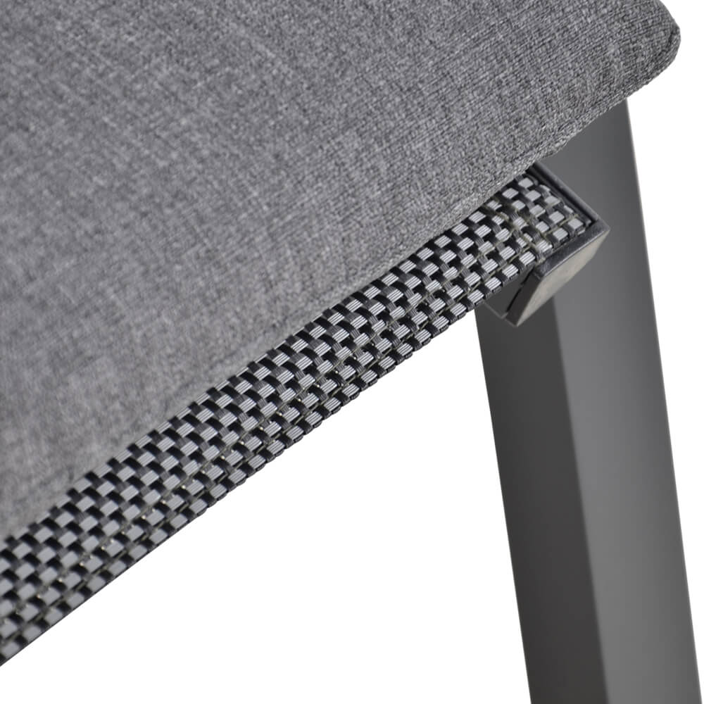 Questo robusto sgabello da giardino è realizzato in alluminio pressofuso sotto costante controllo qualità e rifinito con una verniciatura a polvere grigia. Il cuscino del sedile è rivestito con un tessuto in plastica resistente. Il rivestimento in olefina da 220 g/m^2 è prodotto in grigio. L'imbottitura del sedile contiene un inserto in cotone. I mobili da esterno sono resistenti alle intemperie. Per la pulizia è sufficiente acqua e una spugna. Si sconsiglia l'uso di detergenti acidi, poiché potrebbero danneggiare la superficie e compromettere la resistenza agli agenti atmosferici.