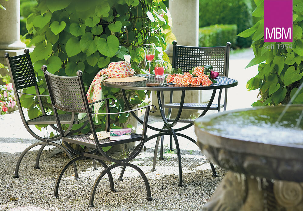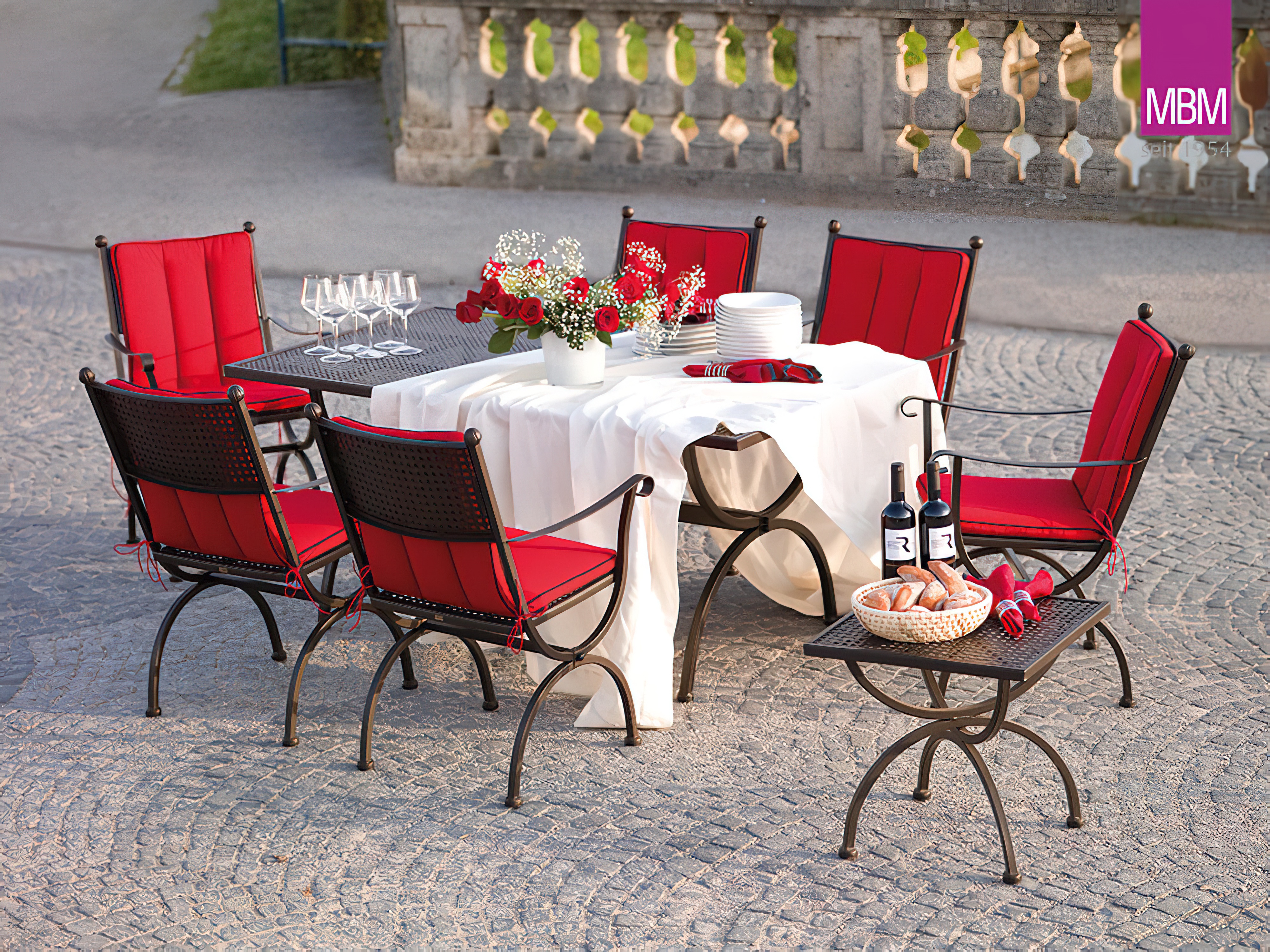 La serie di mobili da giardino ROMEO di MBM è realizzata a mano con ferro pregiato battuto. La superficie della sedia da giardino viene zincata e successivamente rivestita con una verniciatura a polvere di alta qualità . La sedia in ferro battuto è massiccia, robusta e resistente. Grazie ai materiali di prima scelta e al rivestimento protettivo, la sedia è resistente al gelo e agli agenti atmosferici. I mobili da giardino in ferro dovrebbero essere controllati periodicamente per la formazione di ruggine superficiale e, se necessario, trattati con un prodotto antiruggine e successivamente protetti con un olio o uno spray anticorrosione.