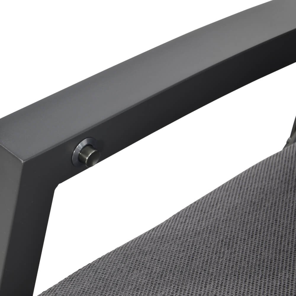 Questa sedia da giardino è realizzata in alluminio sotto costante controllo qualità . La struttura è rivestita con una treccia in polietilene grigio dall'aspetto rattan. Il mobile da esterno è resistente alle intemperie e può essere utilizzato tutto l'anno all'aperto. I cuscini, spessi da 8 a 10 cm, sono prodotti in Olefin da 270 gr/m^2. Per la pulizia sono sufficienti acqua e una spugna. Si sconsiglia l'uso di detergenti acidi, poiché potrebbero danneggiare la superficie e compromettere la resistenza agli agenti atmosferici.