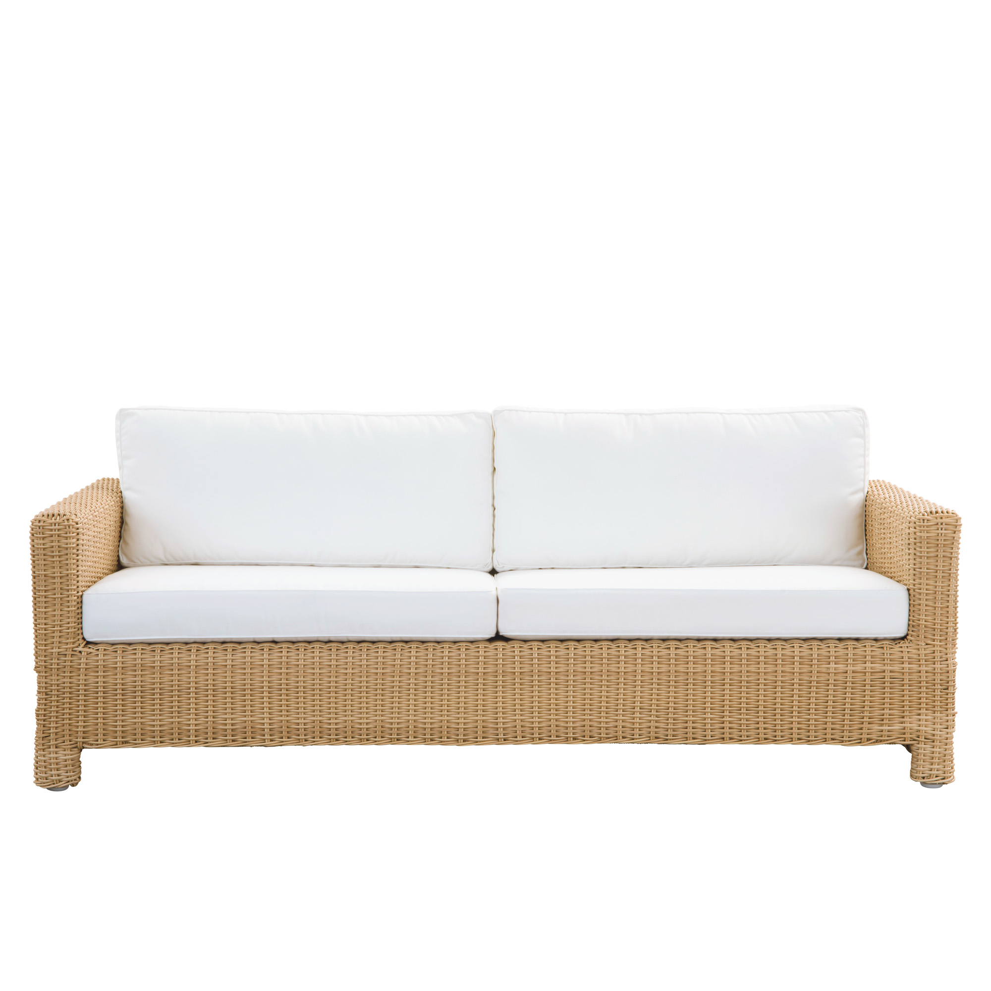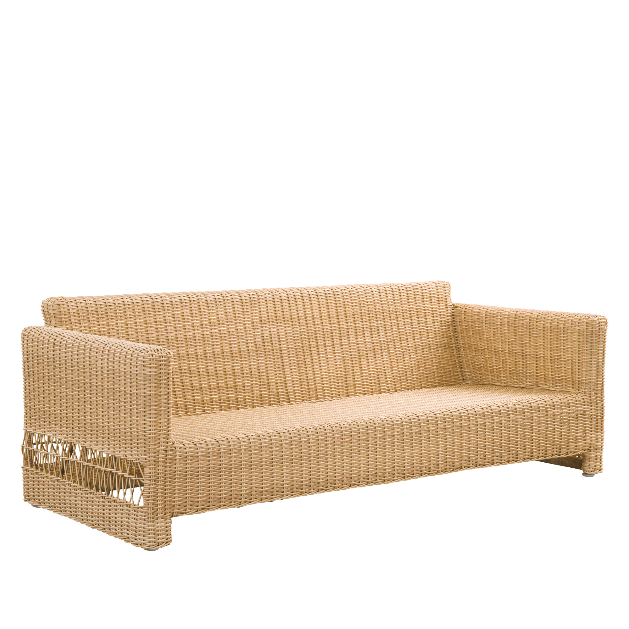 Geflochtenes Outdoor Loungesofa aus Aluminium und Polyrattan in hellbraun - 3-Sitzer Joana / ohne Polster