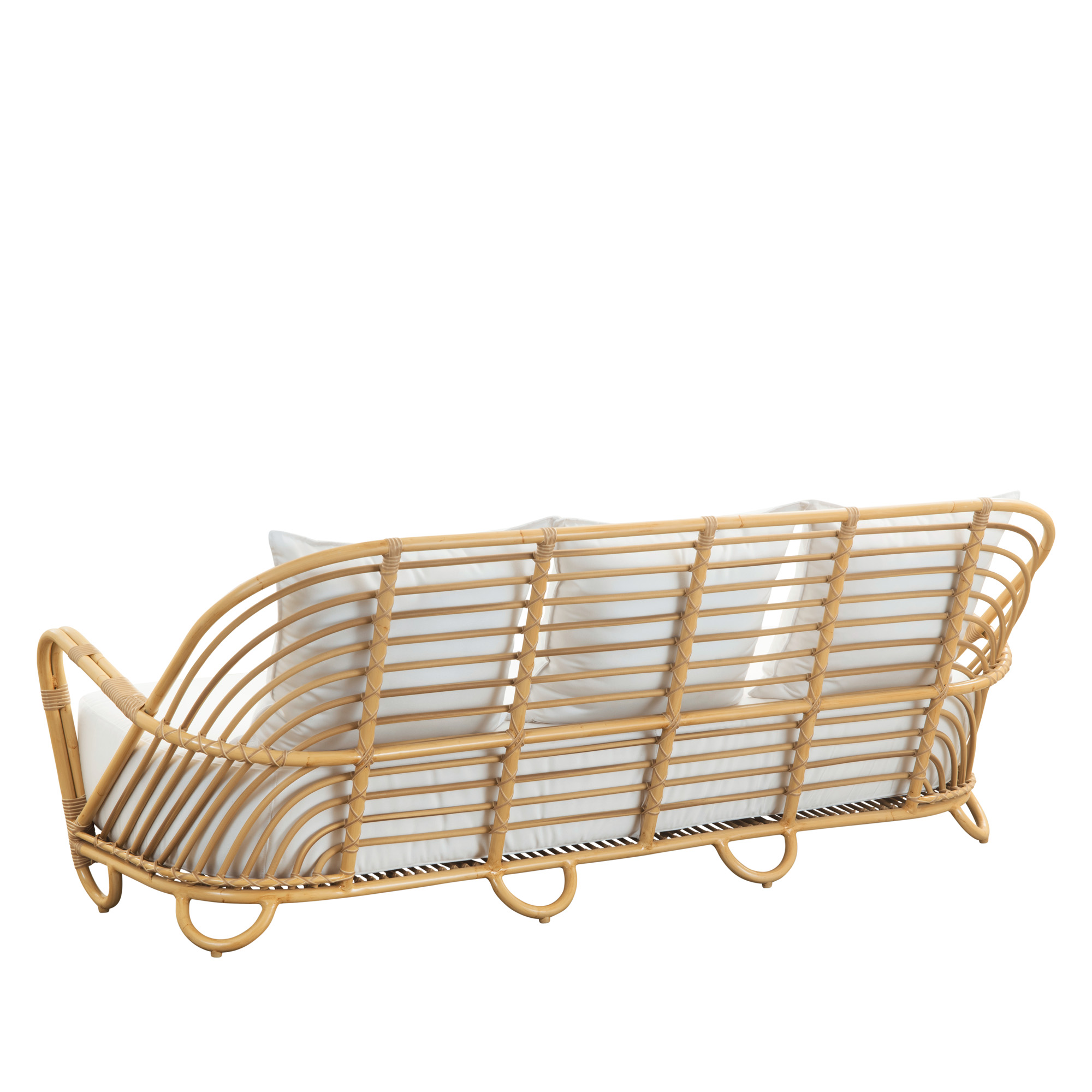 Gepolstertes Gartensofa für drei Personen aus Alu und wetterfesten Rattan - Gartensofa Berit