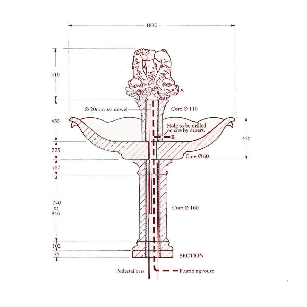 Großer Garten Brunnen Stein - Silwood Park / Terrakotta