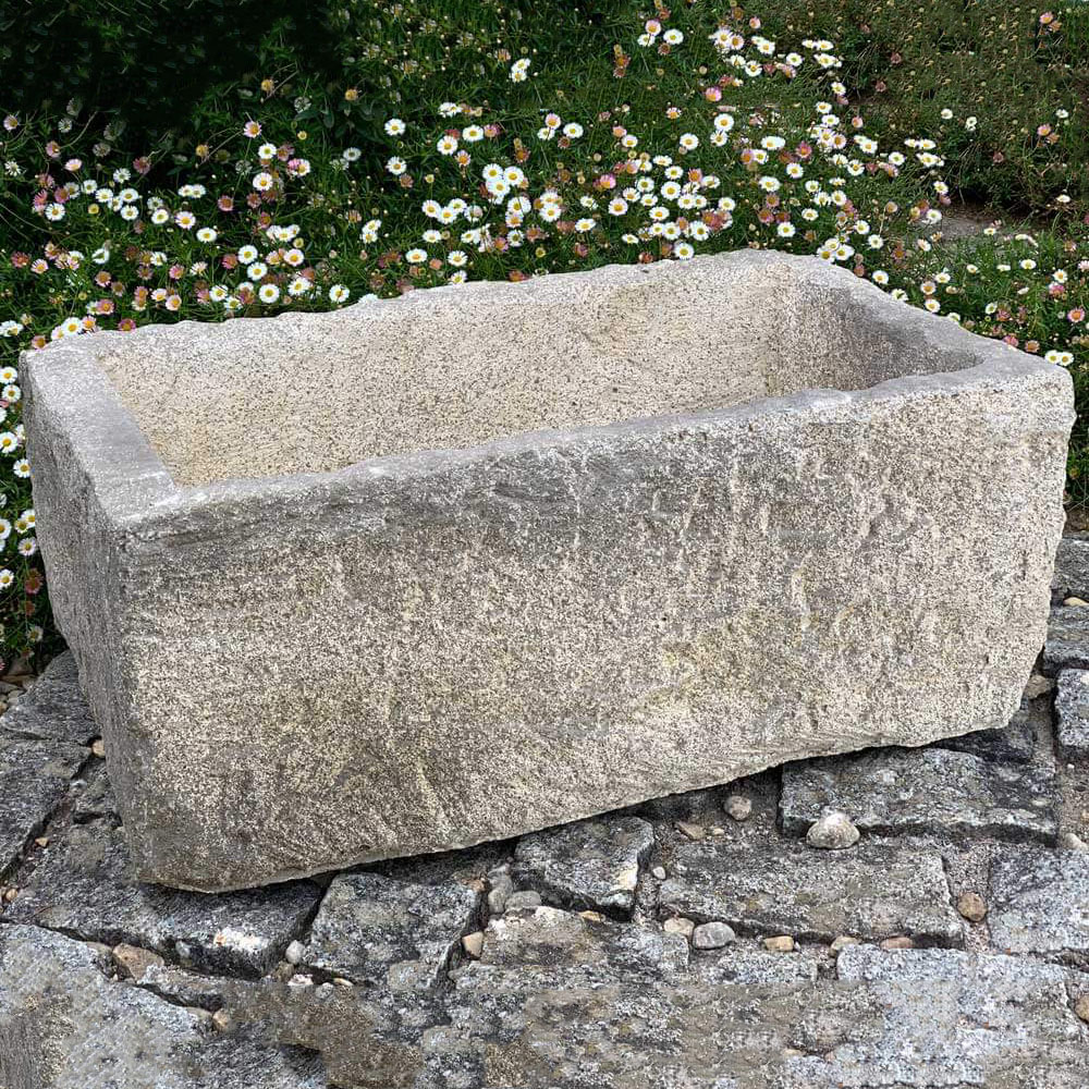 Großer Stein Pflanztrog für den Garten - rechteckig - Qualido / 29x68,5x38cm (HxDm); 80kg