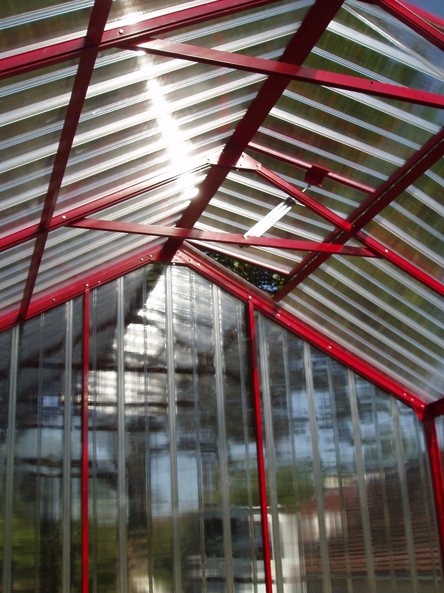 Mentre il vetro di sicurezza solitamente non lascia passare i raggi UV e il PVC o il policarbonato tendono a diventare fragili rapidamente, questa serra è realizzata in acrilico. Grazie alla nostra lavorazione interna, le lastre raggiungono uno spessore fino a 20 mm, con una trasmissione luminosa tra l'88% e il 91% e un isolamento migliorato. Questo spessore si è dimostrato particolarmente efficace contro grandine e neve. Le lastre sono unite tramite nastri diffusivi che permettono la fuoriuscita della condensa e impediscono l'ingresso di muschi e insetti.
