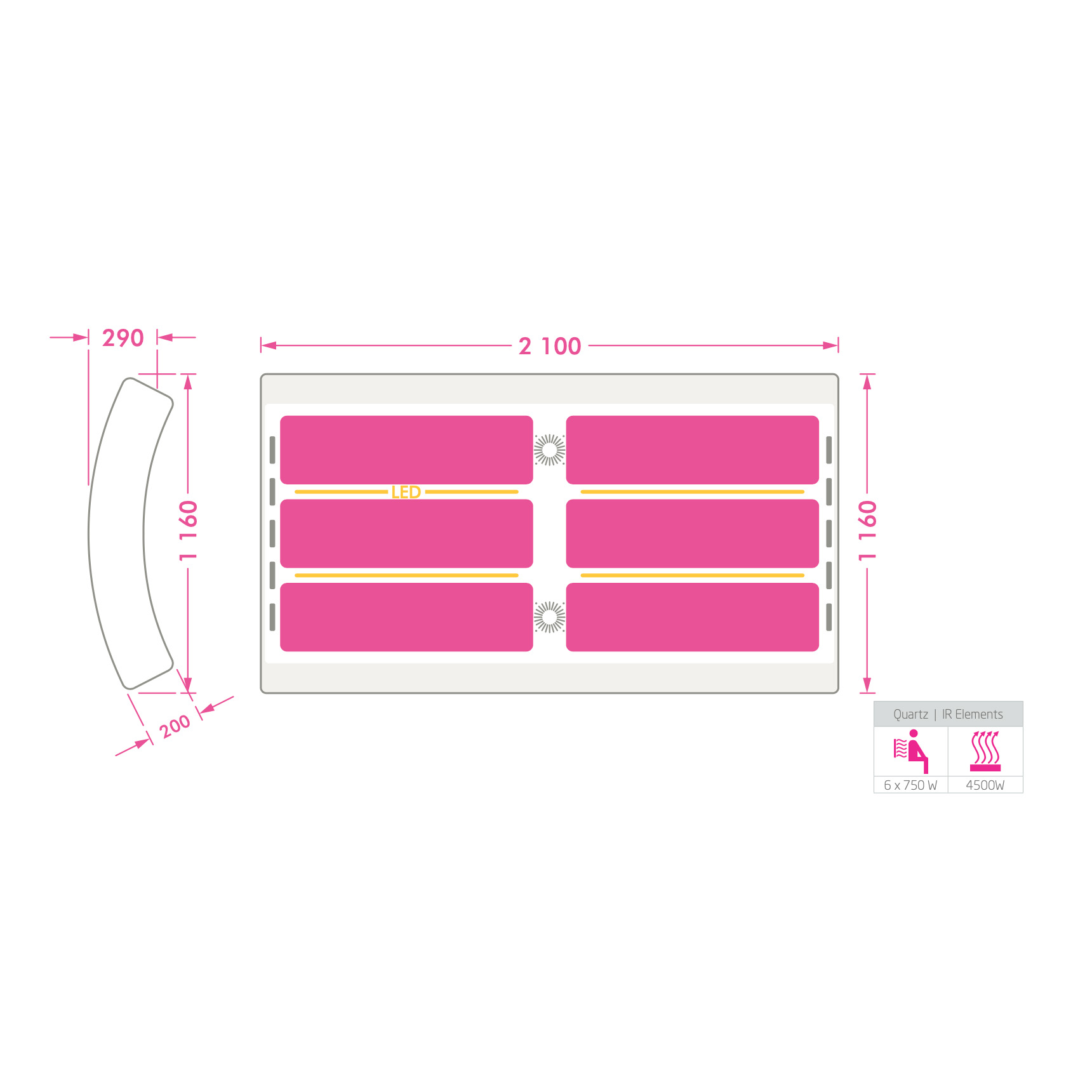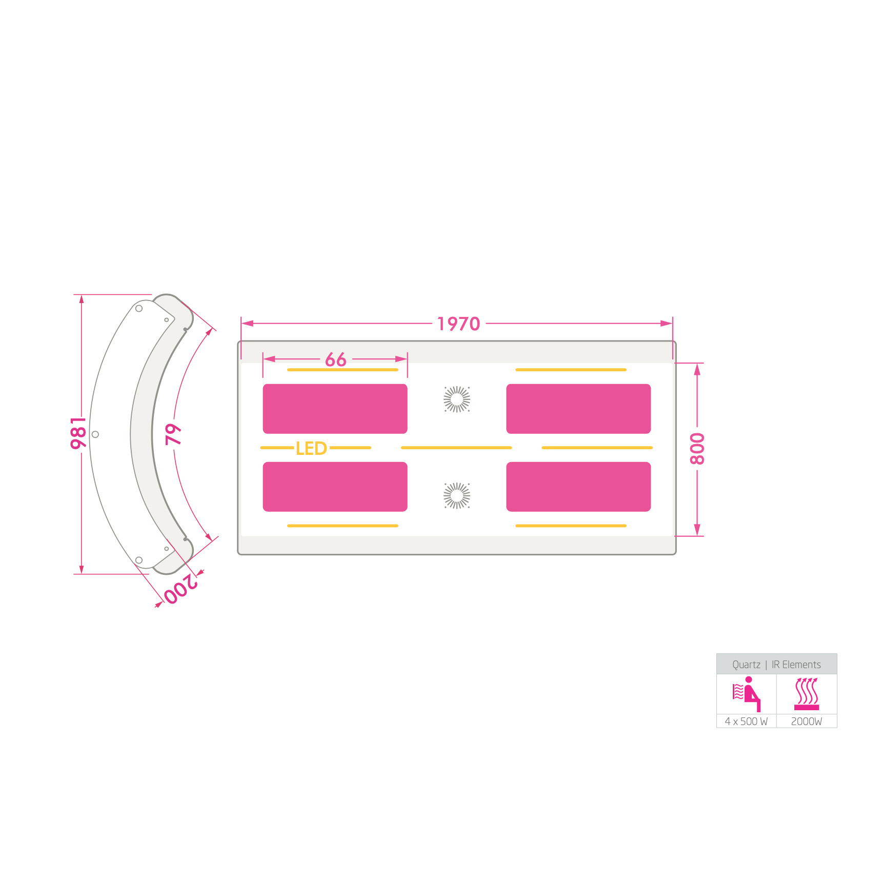 - 4 lampade a infrarossi al quarzo da 500 watt integrate