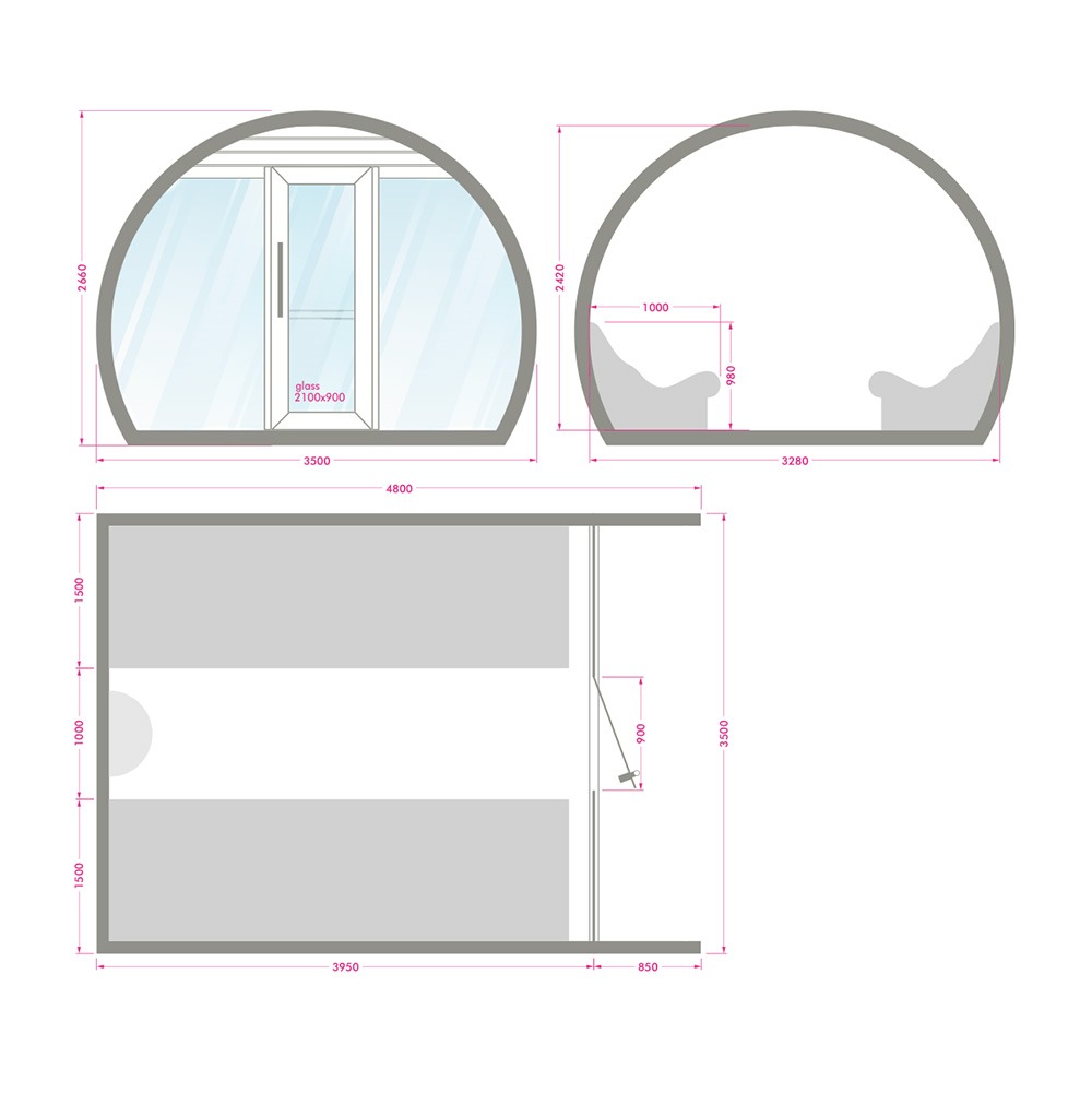 Il bagno turco da esterno è dotato di un equipaggiamento completo e ricco di funzionalità. Alcuni componenti devono essere scelti da voi. Sono possibili ulteriori richieste di design e attrezzature personalizzate per soluzioni benessere su misura. Ecco una panoramica dell'equipaggiamento standard: