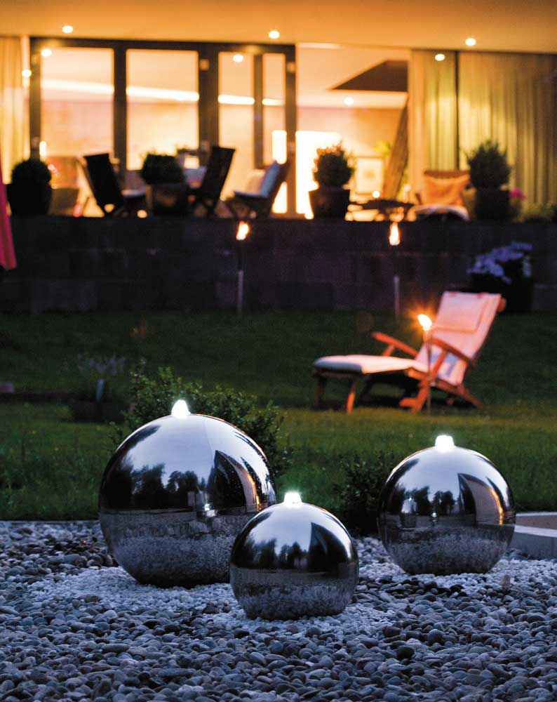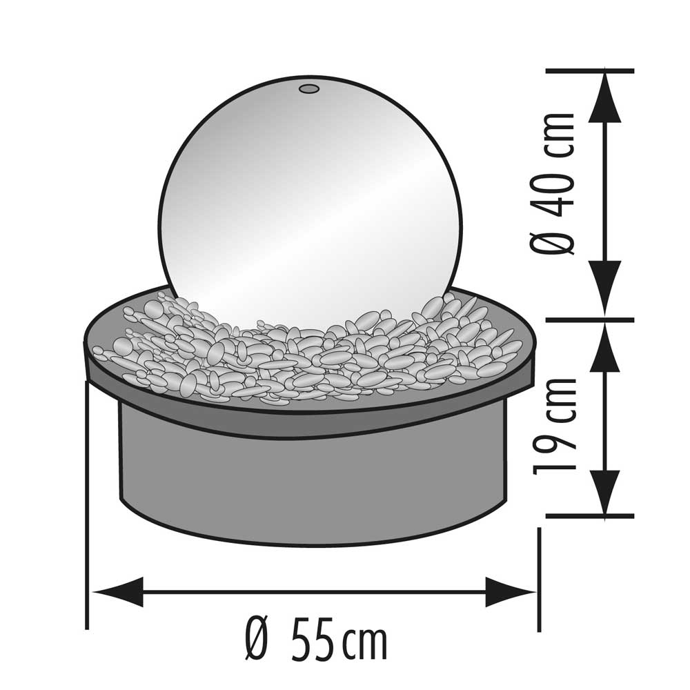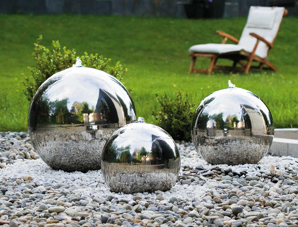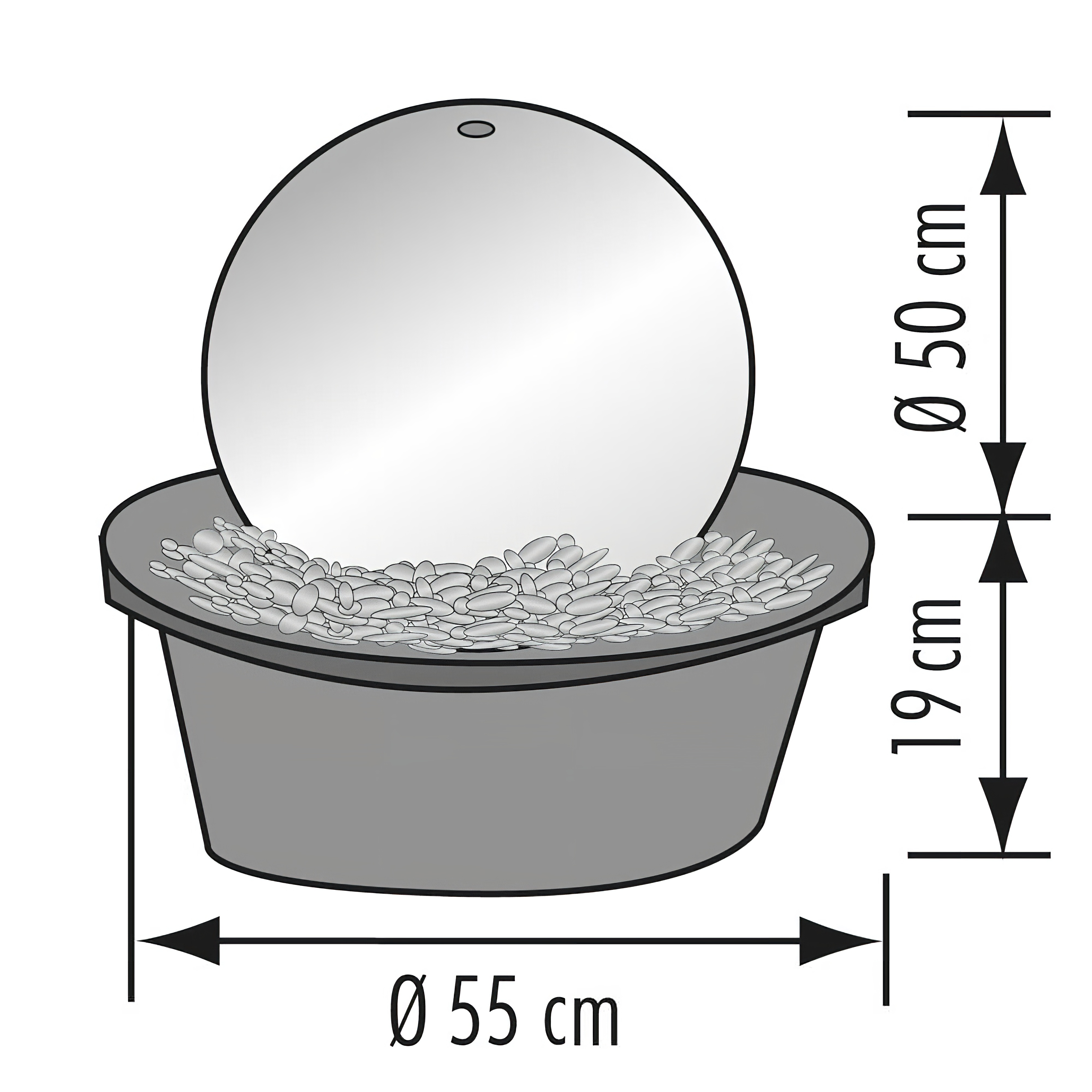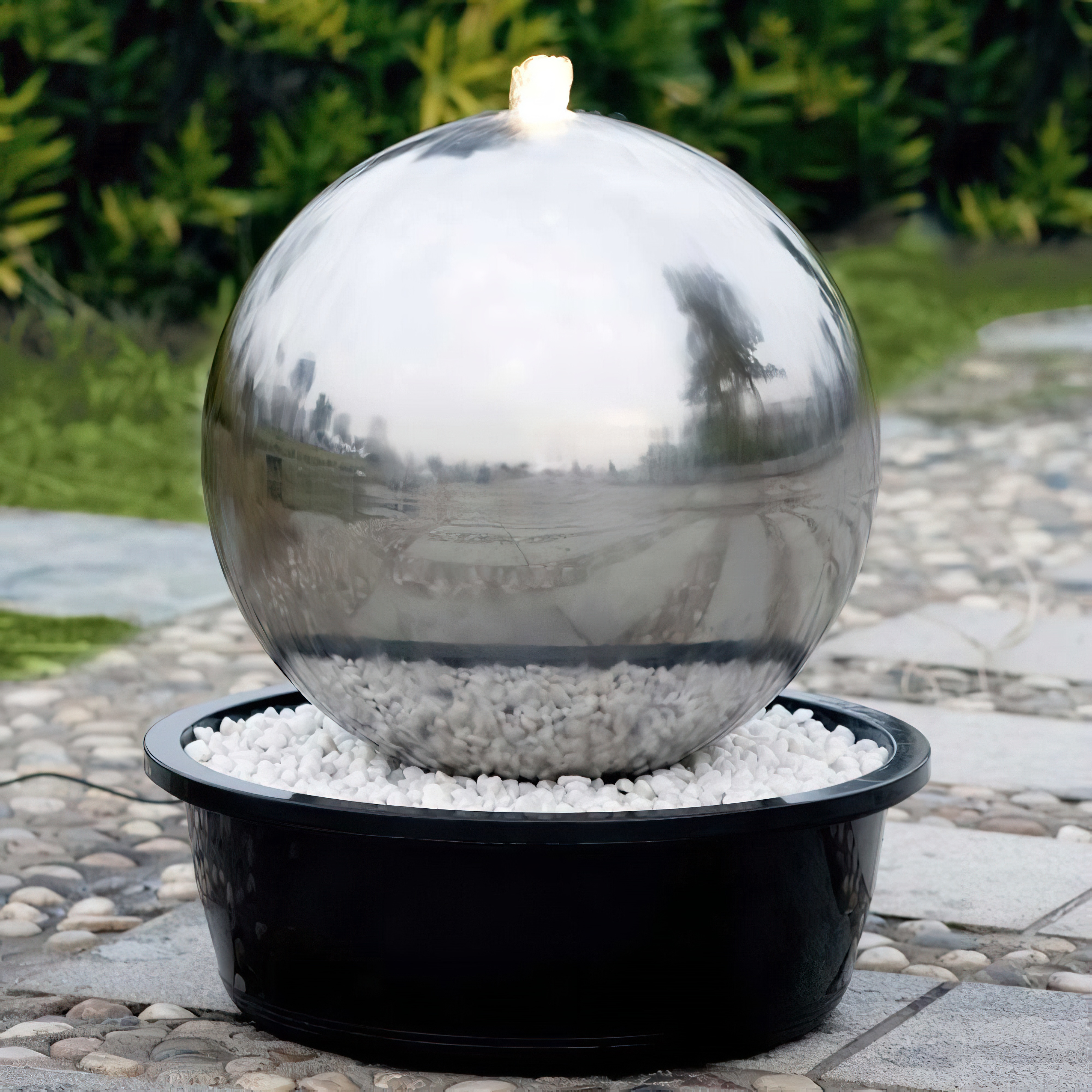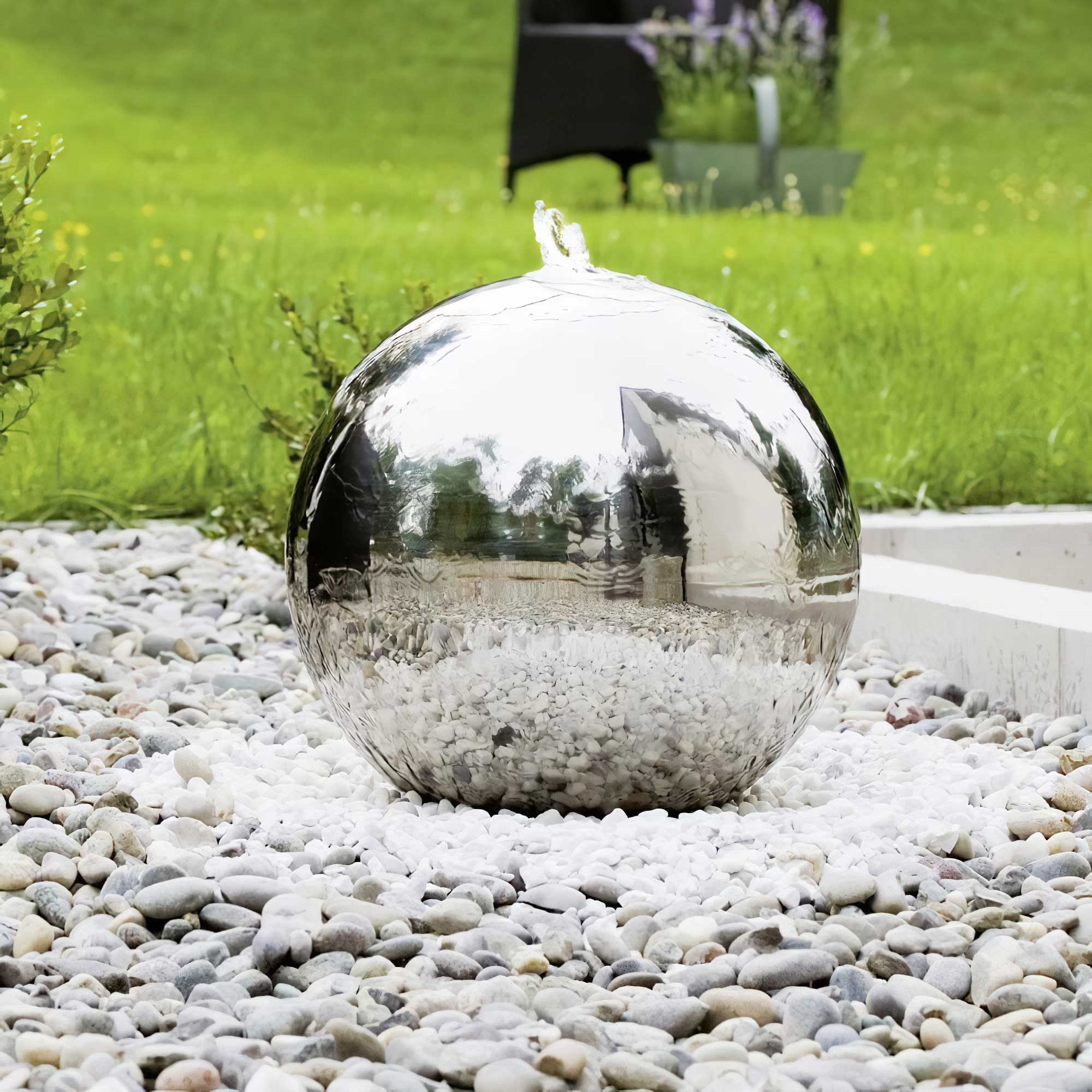 Questa fontana da giardino incassata è realizzata in acciaio inox con illuminazione LED integrata e presenta una sfera in acciaio inox lucidata di 40 cm o 50 cm di diametro. La luce LED inclusa nel set fa risplendere l'acqua, creando un effetto suggestivo. Gli esperti di Feng Shui riconosceranno subito il significato di questo gioco d'acqua: l'energia dell'acqua simboleggia la comunicazione, la trasmissione di idee e la fortuna sia nella vita privata che negli affari. L'energia del metallo rappresenta prosperità materiale, ricchezza e successo.
