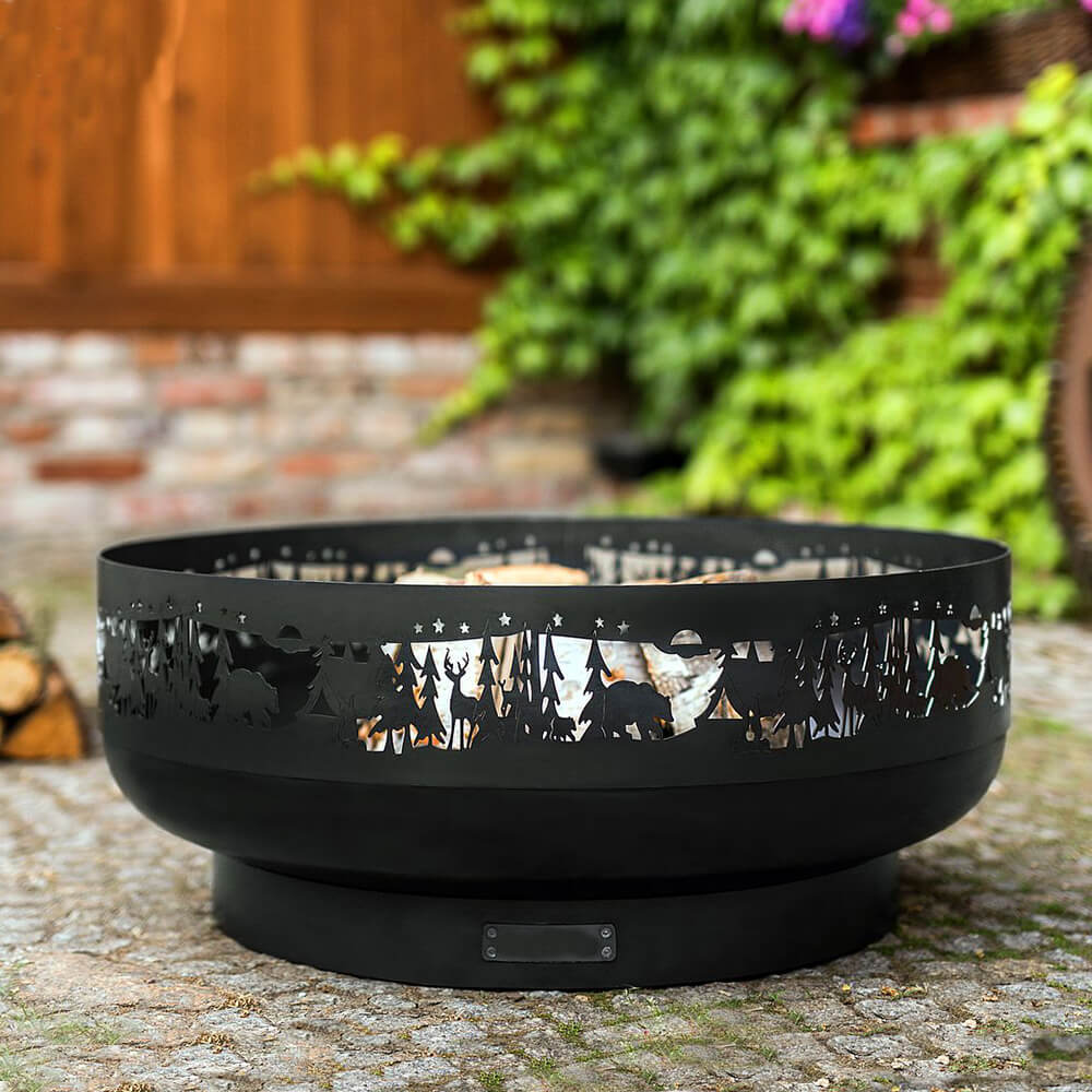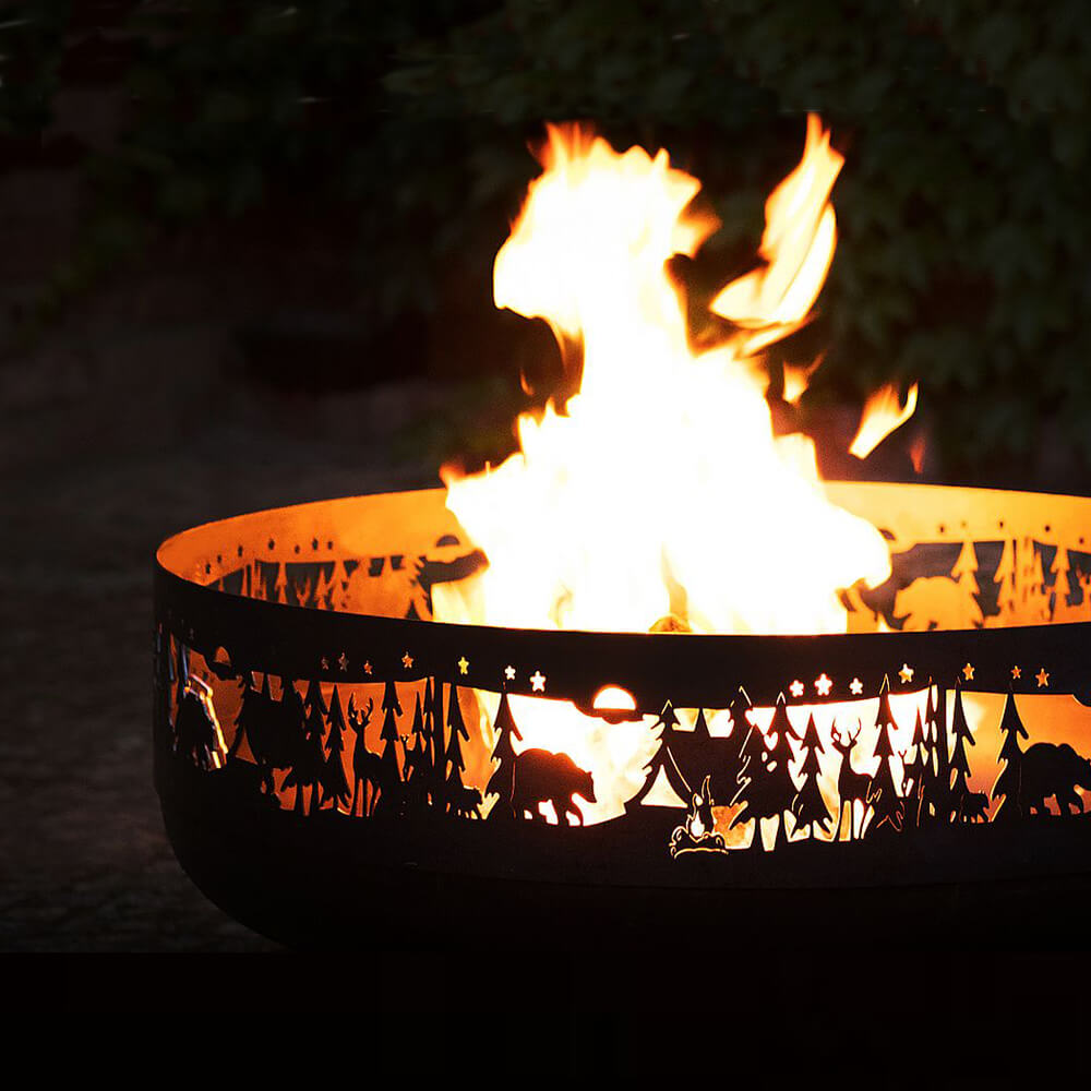 Lasercut Feuerschale - Motiv Wald - Feuerstelle aus Stahl für draußen - Dasos Feuerschale