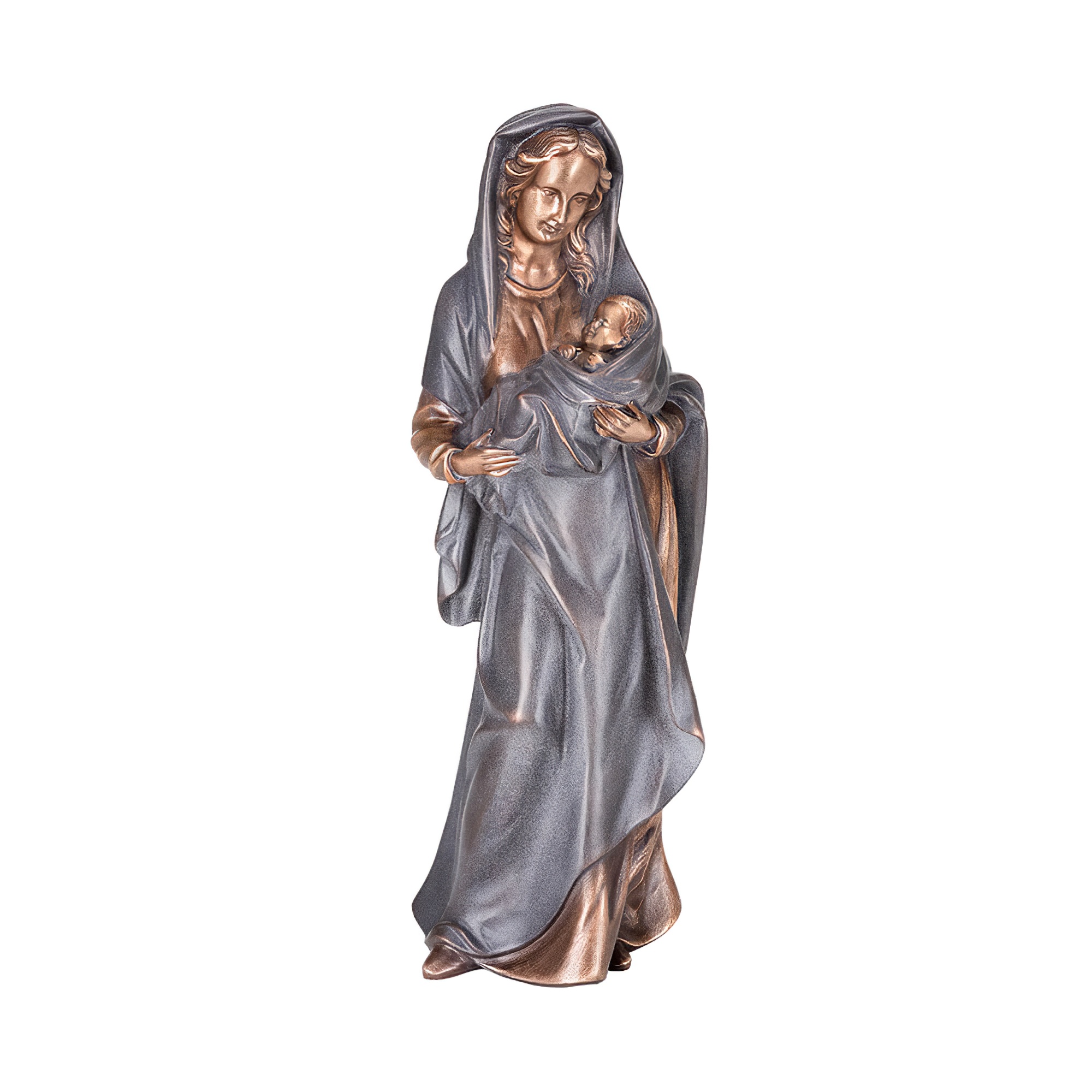 Madonna Gartenskulptur mit Kind aus Bronze - Madonna Felicita / 70x24x20cm (HxBxT) / Bronze