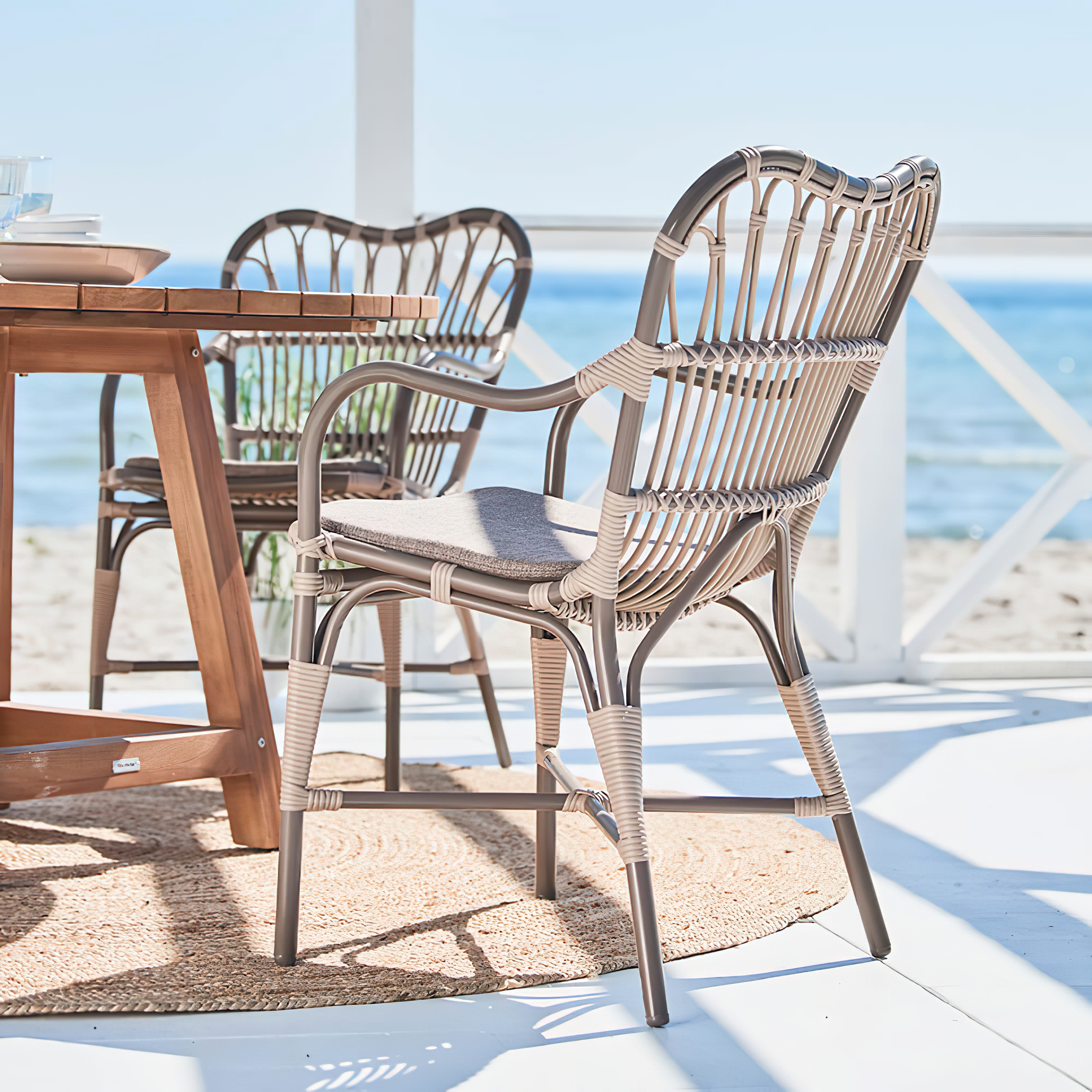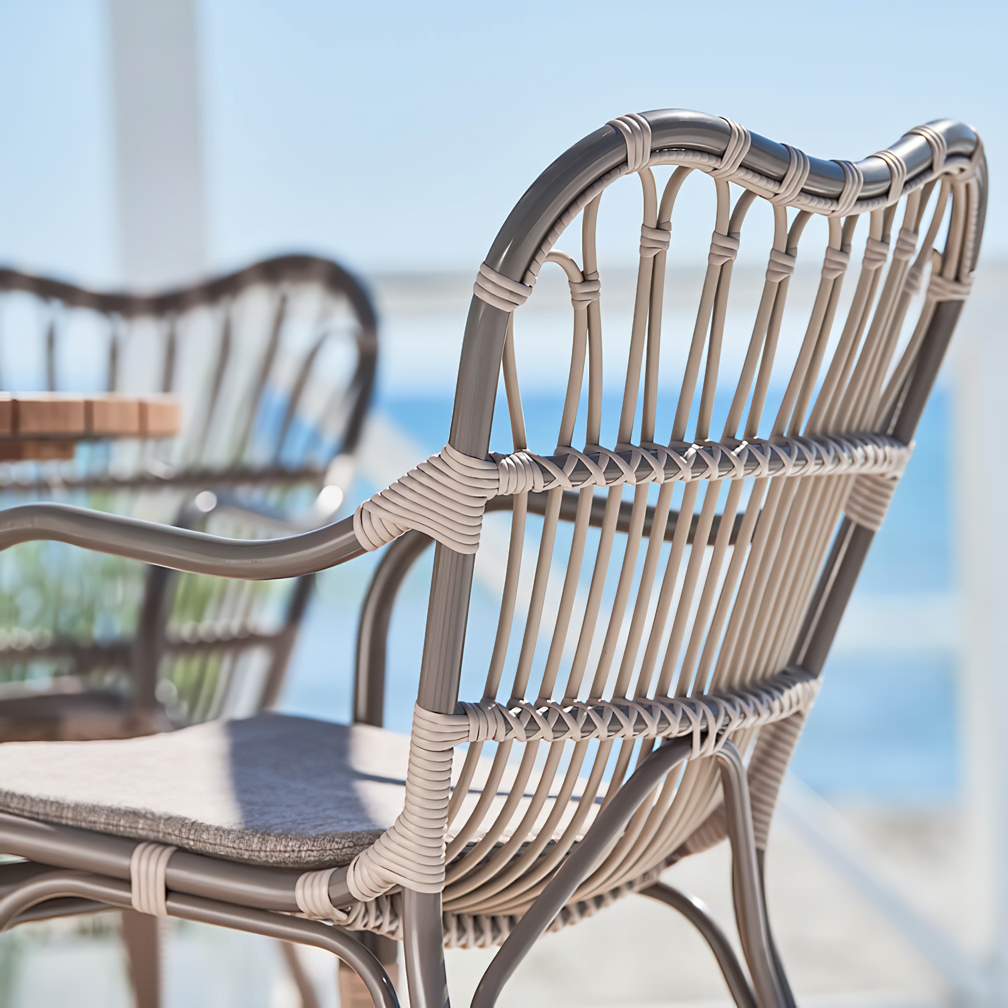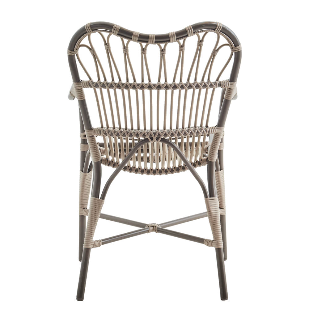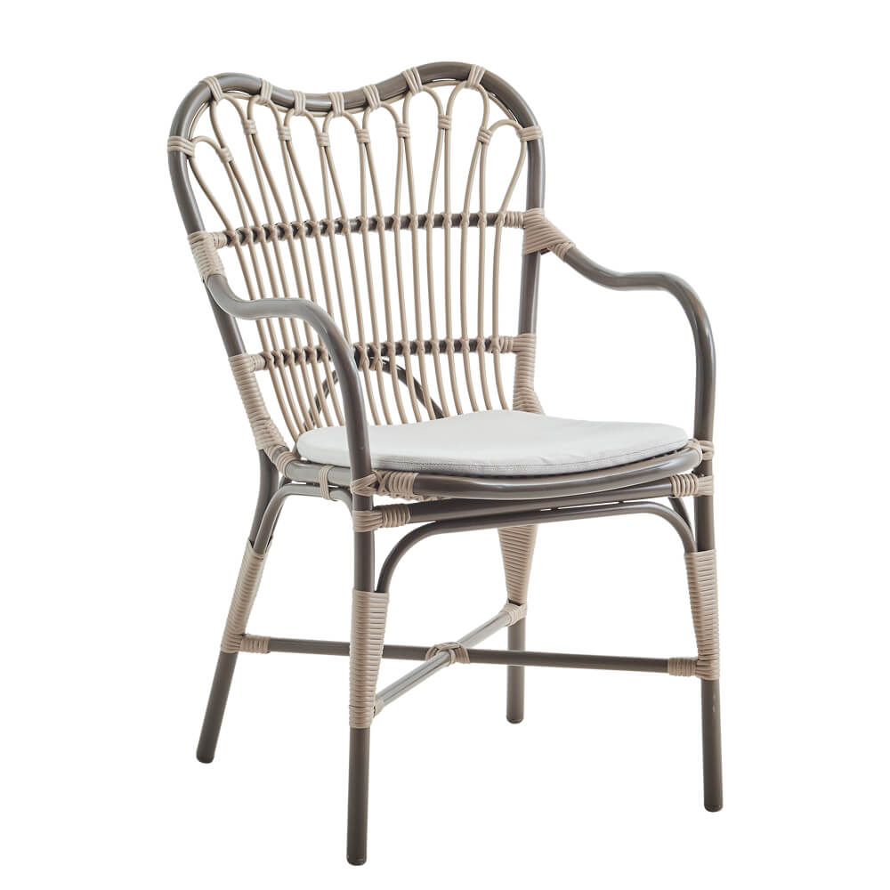 Moccachino farbener Stuhl für den Garten mit Arm- und Rückenlehne - Gartenstuhl Finja / ohne Sitzkissen