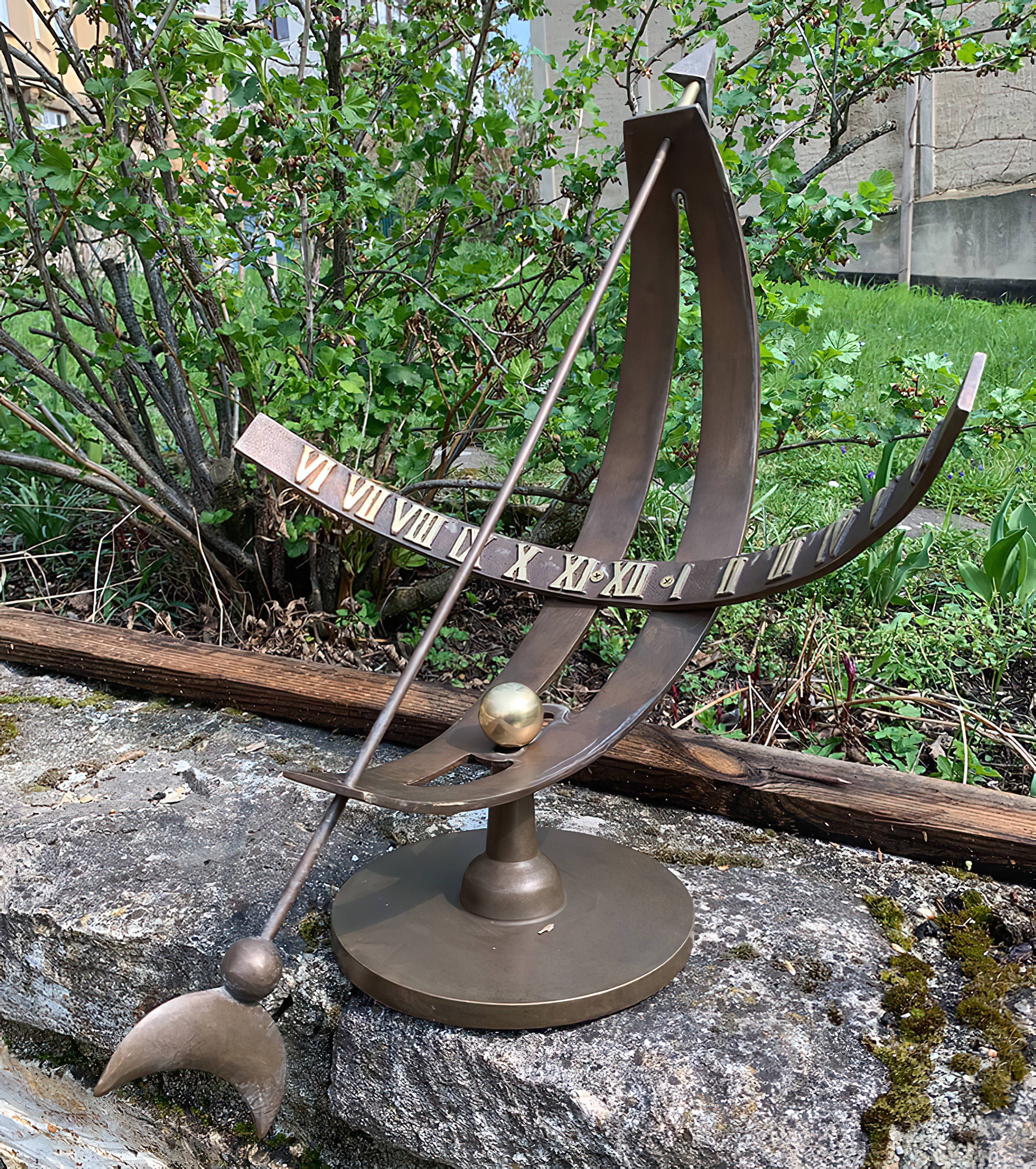 Elegante meridiana in bronzo come decorazione da giardino