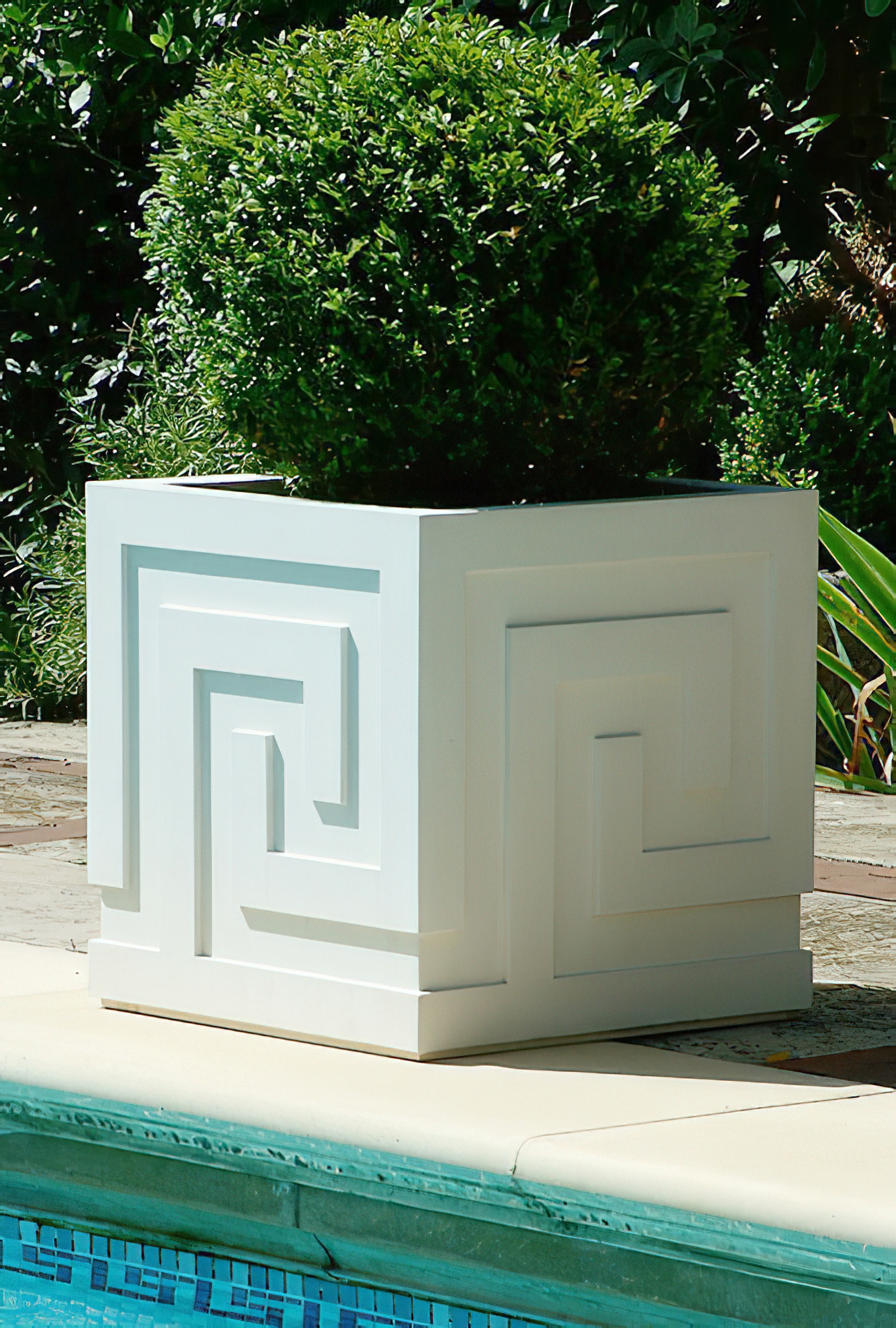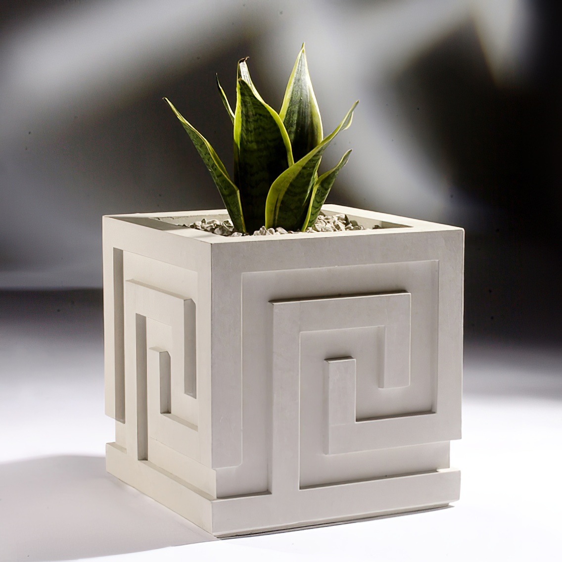 Questo elegante vaso da fiori in pietra ricostituita inglese è ideale sia per esterni che per interni. Grazie al suo peso elevato, questo contenitore per piante è estremamente stabile; la pietra è inoltre resistente al gelo e agli agenti atmosferici, permettendo di lasciarlo all'aperto tutto l'anno. Non dovrete più preoccuparvi di piante danneggiate: questo vaso non sarà spostato nemmeno dal vento più forte. Il contenitore è realizzato a mano con la massima qualità dai nostri partner specializzati in Inghilterra. Offriamo esclusivamente vasi e anfore realizzati con materiali pregiati, garantendo così anni di piacere per la vostra decorazione da giardino. Anche nel design non facciamo compromessi: questo elegante vaso è stato creato esclusivamente da artisti e scultori. Il vaso quadrato contemporaneo è decorato con linee architettoniche moderne in stile meandro.
