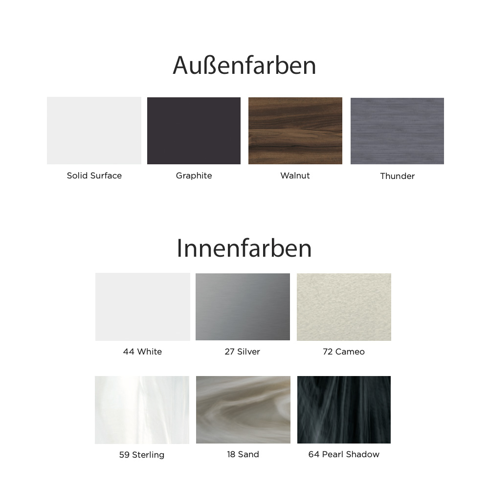- colori interni selezionabili: Bianco, Argento, Cameo, Sterling, Sabbia, Pearl Shadow