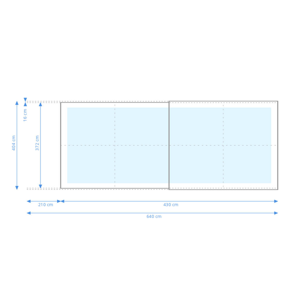 Questa copertura bassa per piscina raggiunge un'altezza massima di 175 cm. Le pareti frontali e posteriori sono rimovibili. Per le vetrate utilizziamo pannelli alveolari in policarbonato. Questi riempimenti robusti con filtro UV su entrambi i lati, sigillati con silicone ai profili, sono disponibili con uno spessore standard di 10 mm (standard o fumé) oppure 4 mm (trasparente chiaro). La fornitura include guide a terra scorrevoli su un lato per entrambi i lati, senza guide di estensione. Ecco i dati principali a colpo d'occhio: