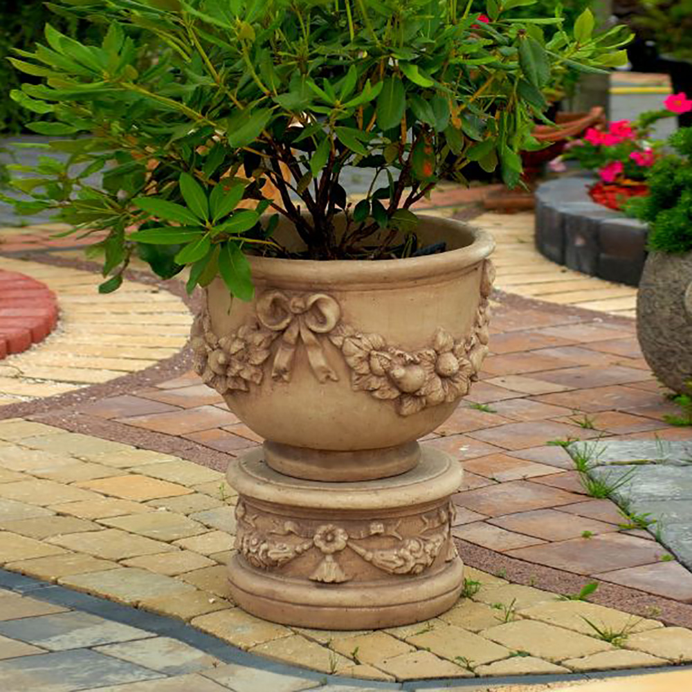 Rundes Gartenpodest aus Steinguss mit floraler Verzierung - Biagio / Arkadia