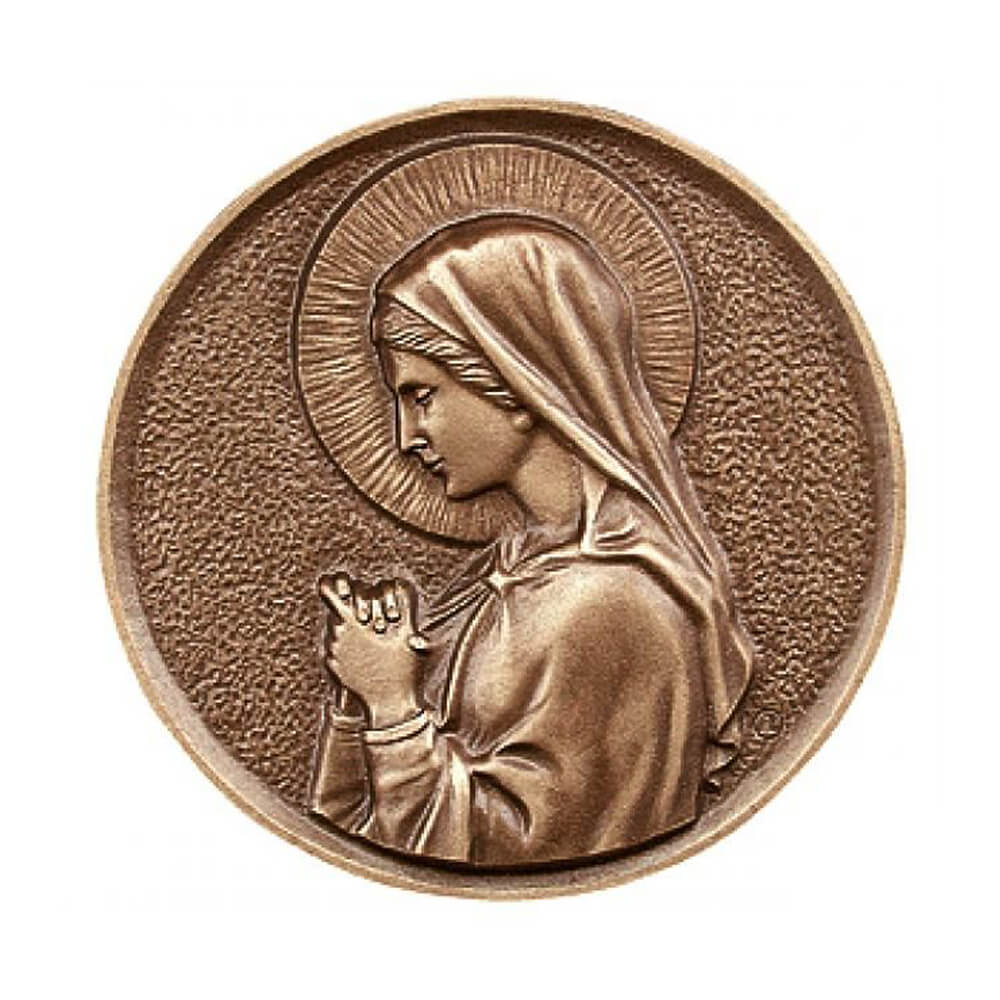 Rundes Wand Bronzerelief betende Maria - Madonna Hiltrud / Bronze braun