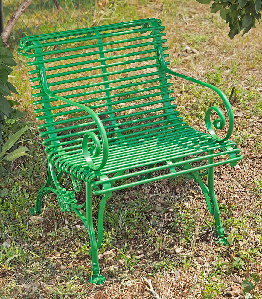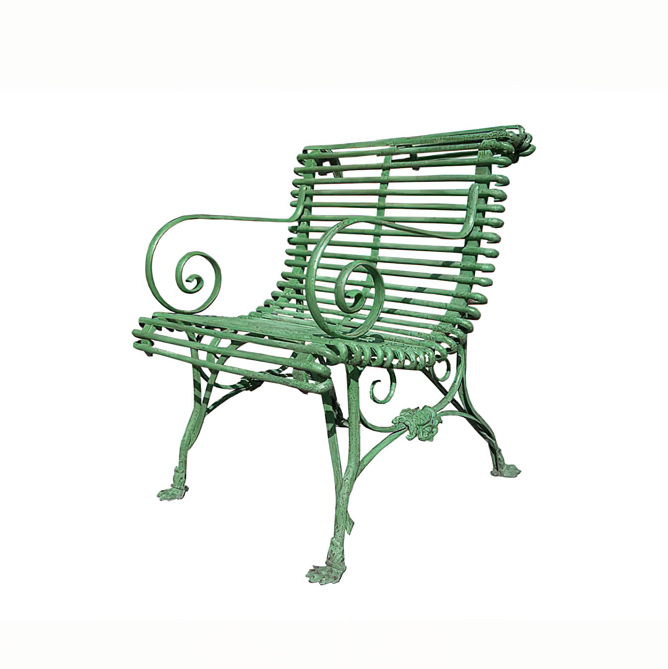 Schmiedeeisen Garten Stuhl mit Armlehne antik - Coralie / grün