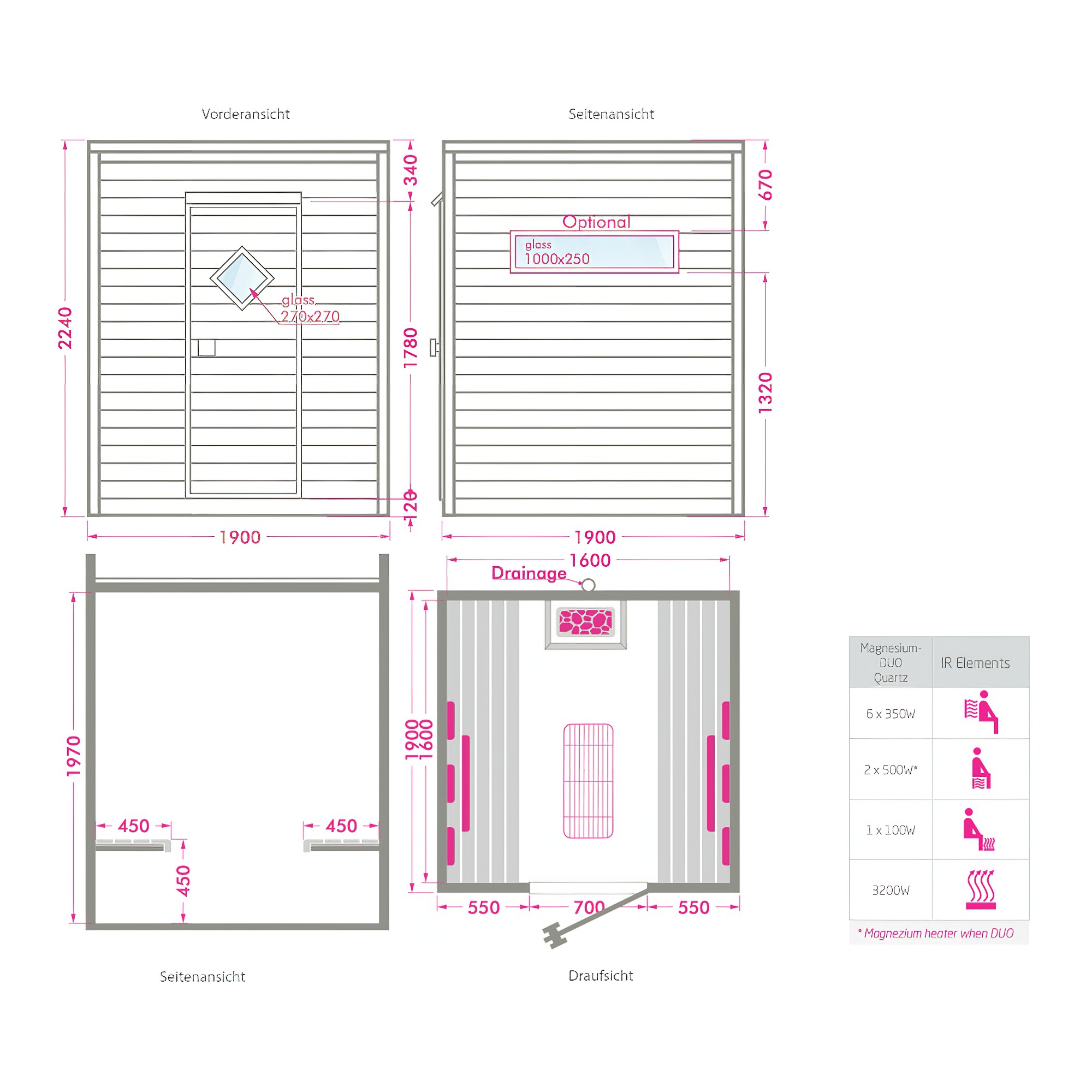 - Quali vostre idee o opzioni aggiuntive possiamo realizzare (ad esempio forno a legna, sauna biologica o riscaldatore a infrarossi per terapia combinata del calore)?