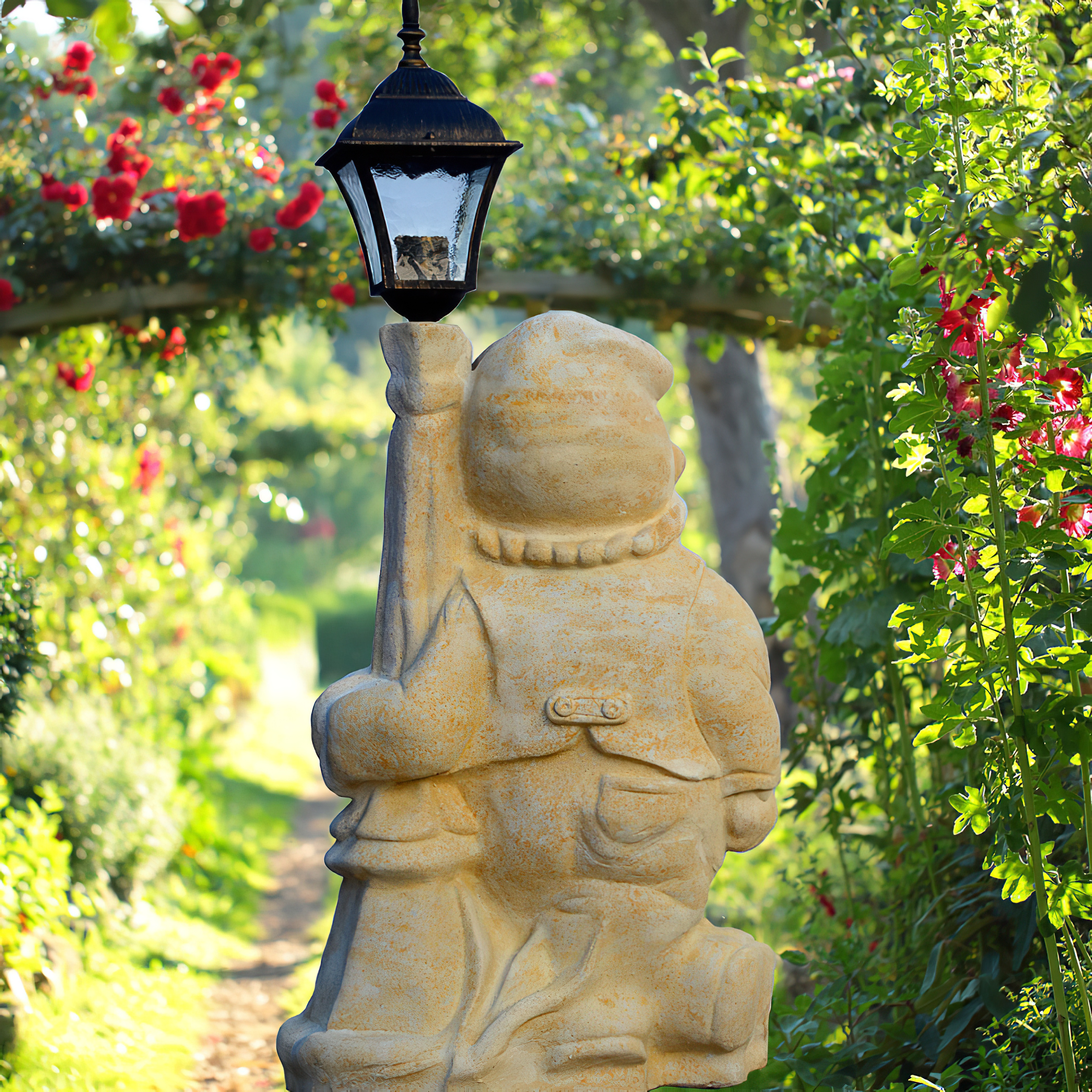 Gnomo da giardino decorativo in pietra con lanterna