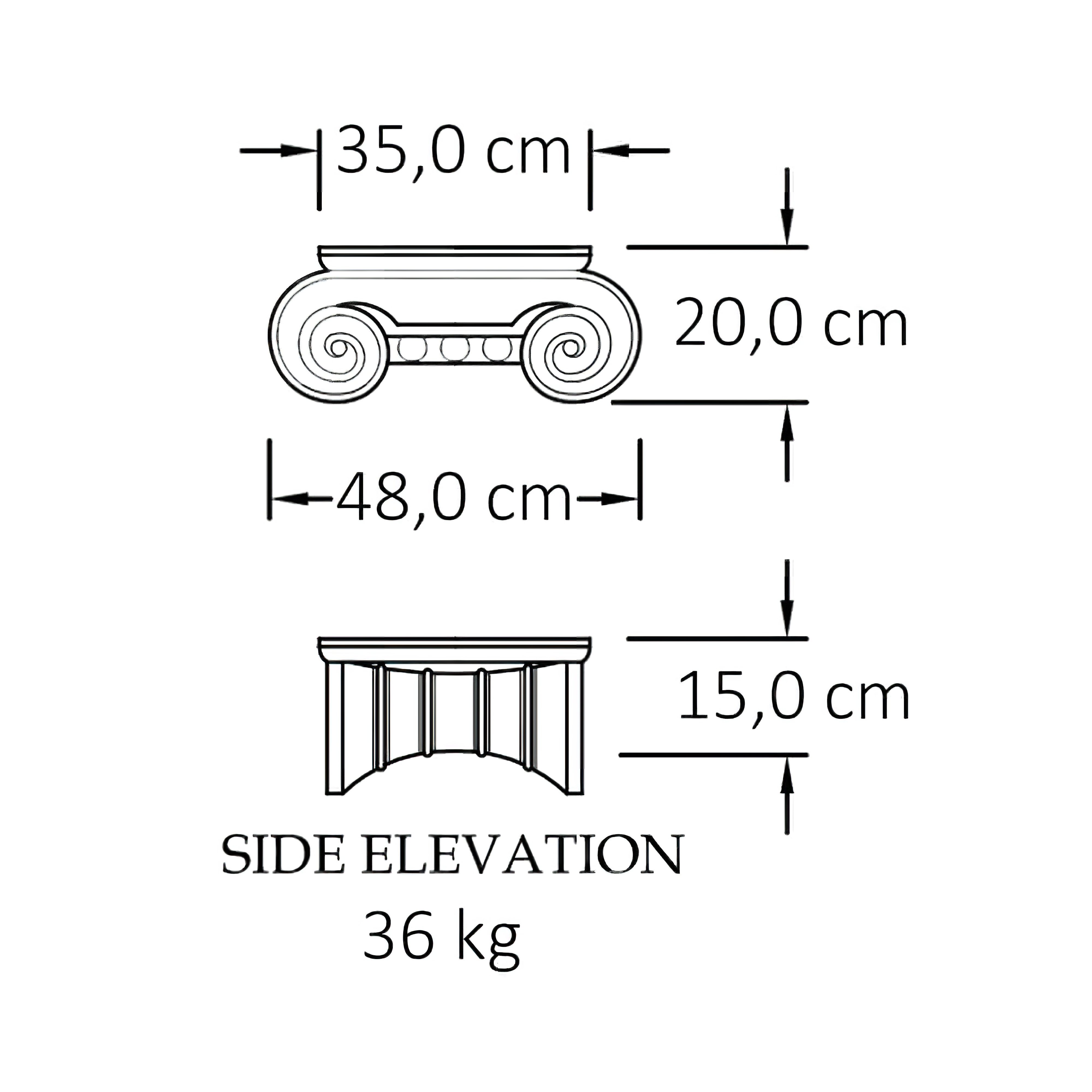 Stein Kapitell jonisches Design für runde Säulen - Ricbert / 20x48x48cm (HxBxT) / Terrakotta