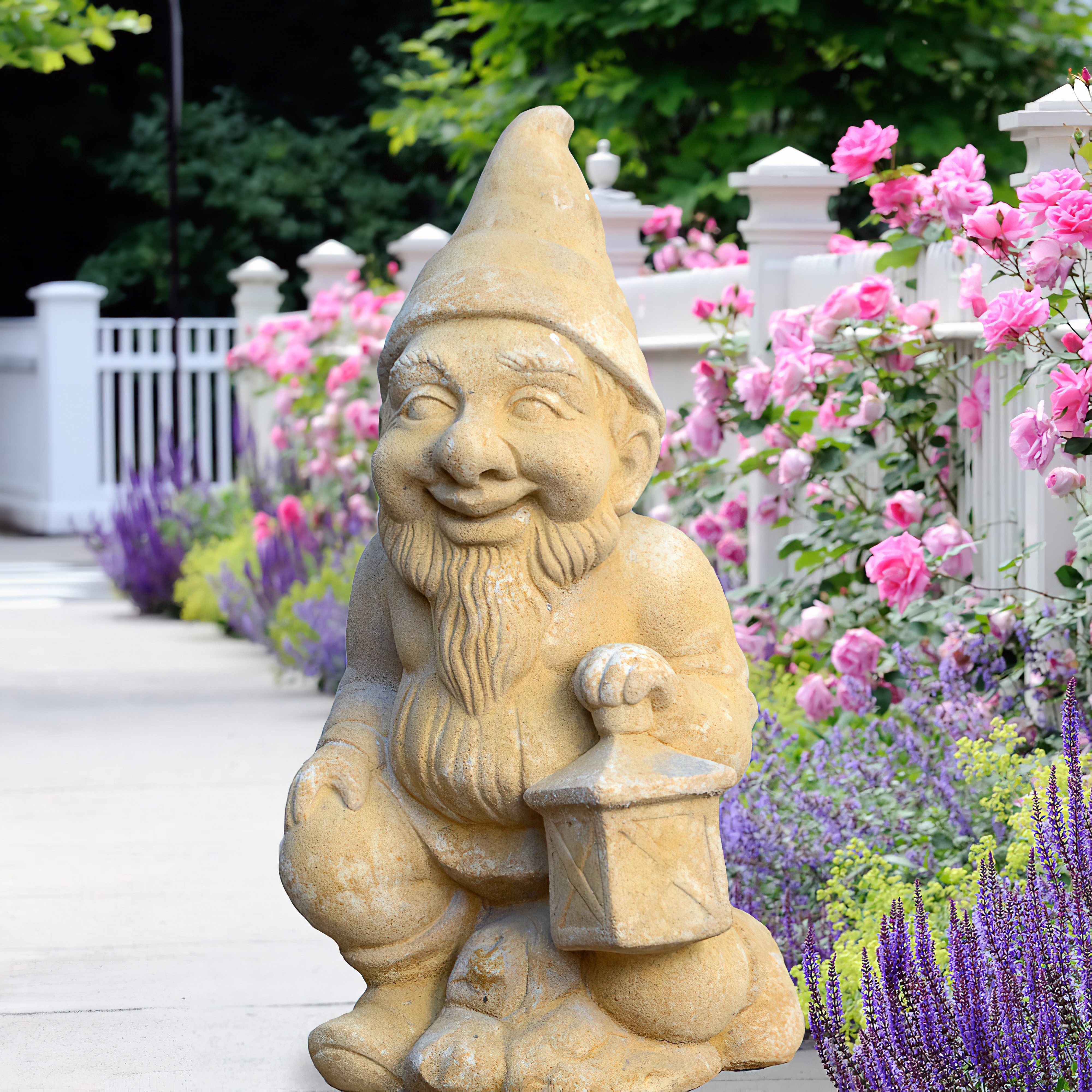 Gnometto da giardino simpatico con lanterna