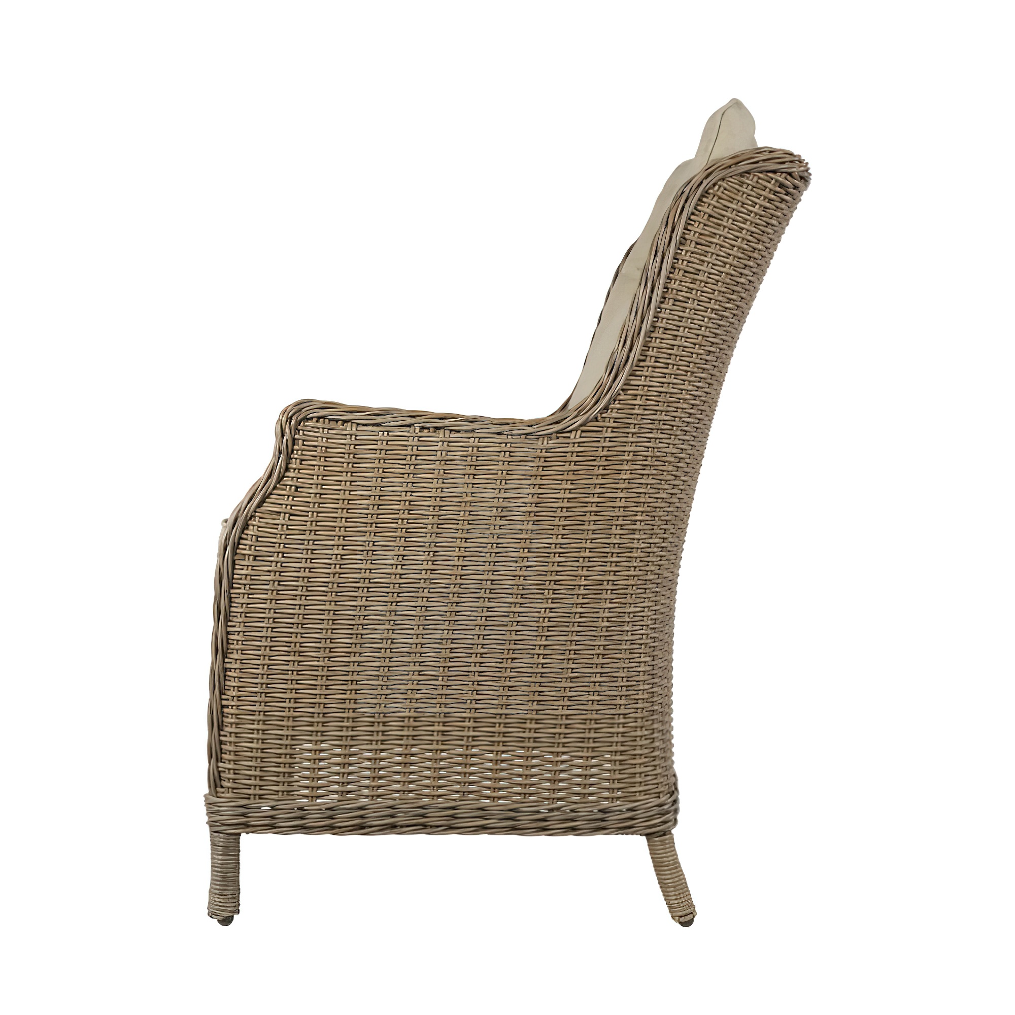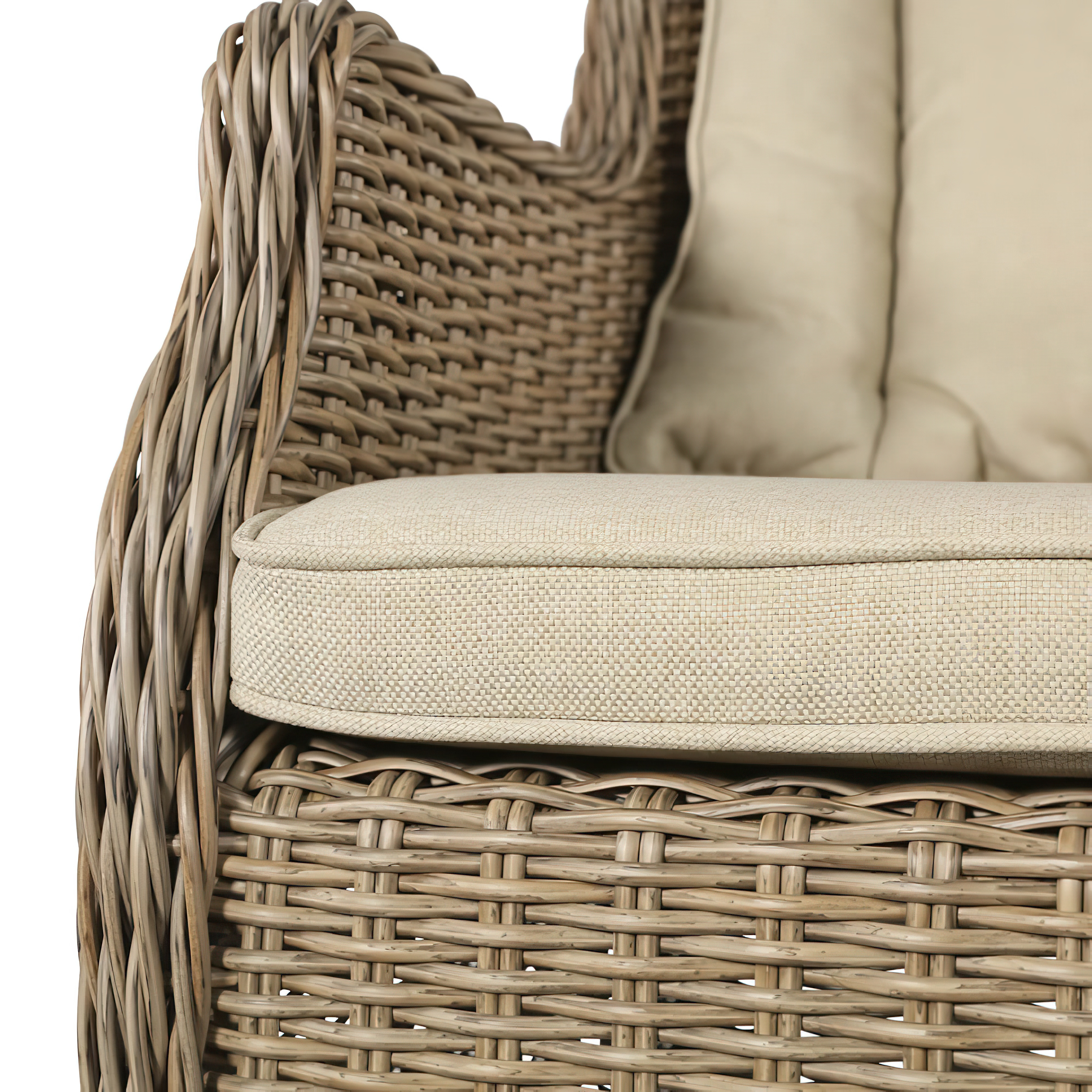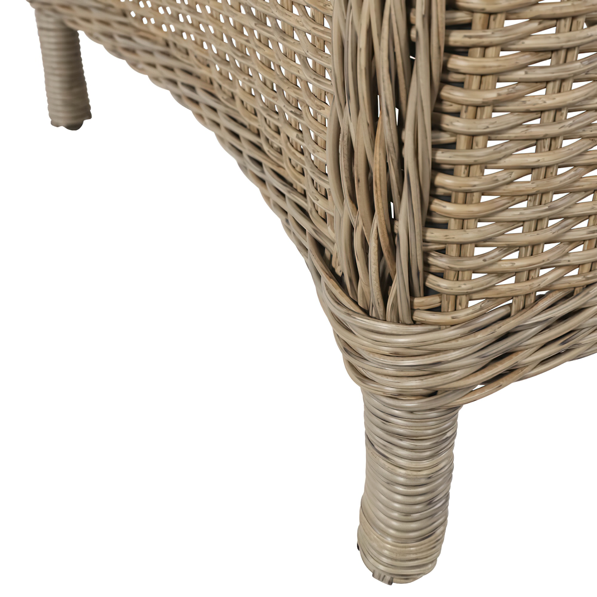 Questa poltrona da giardino è realizzata in polyrattan e alluminio, sottoposta a rigorosi controlli di qualità . Il mobile da esterno è resistente agli agenti atmosferici e può essere utilizzato tutto l'anno all'aperto. I cuscini spessi sono prodotti in poliestere con un inserto in schiuma e cotone. Per la pulizia, sono sufficienti acqua e una spugna. Si sconsiglia l'uso di detergenti acidi, poiché potrebbero danneggiare la superficie e compromettere la resistenza agli agenti atmosferici.