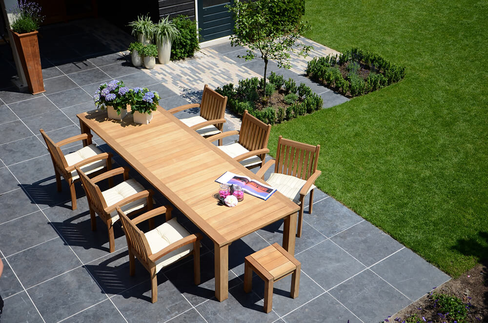 I mobili da giardino della collezione Imperial Teak sono sedie, tavoli e panche realizzati con grande cura e materiali pregiati. Per questi mobili viene utilizzato esclusivamente legno di teak proveniente da piantagioni gestite in modo sostenibile e da fornitori di legno certificati. Ogni dettaglio è lavorato con precisione artigianale: tutte le parti di collegamento, le cerniere e i componenti in legno sono realizzati con la massima accuratezza. La produzione pone l'accento sulla durata, il design e la funzionalità , garantendo così un piacere duraturo con questi pezzi d'arredo senza tempo e di alta qualità .