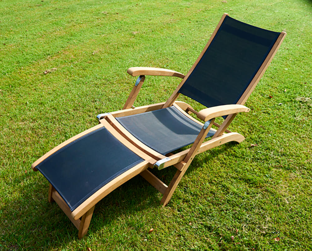 Verstellbare Sonnenliege aus Teakholz & Textilene - Harriett Deckchair / Schwarz