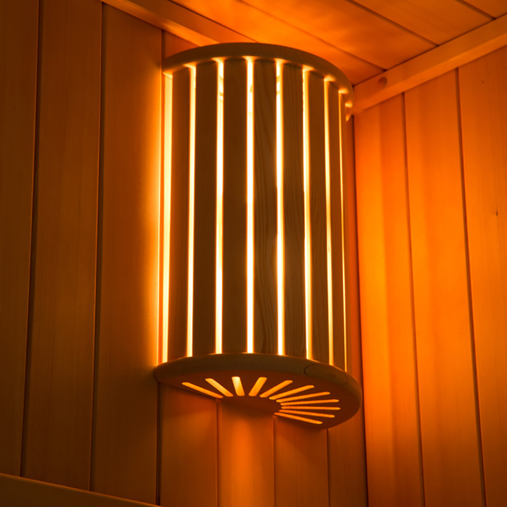 - Inclusi tappetino antiscivolo, poggiatesta, lampada per sauna e set sauna con termometro