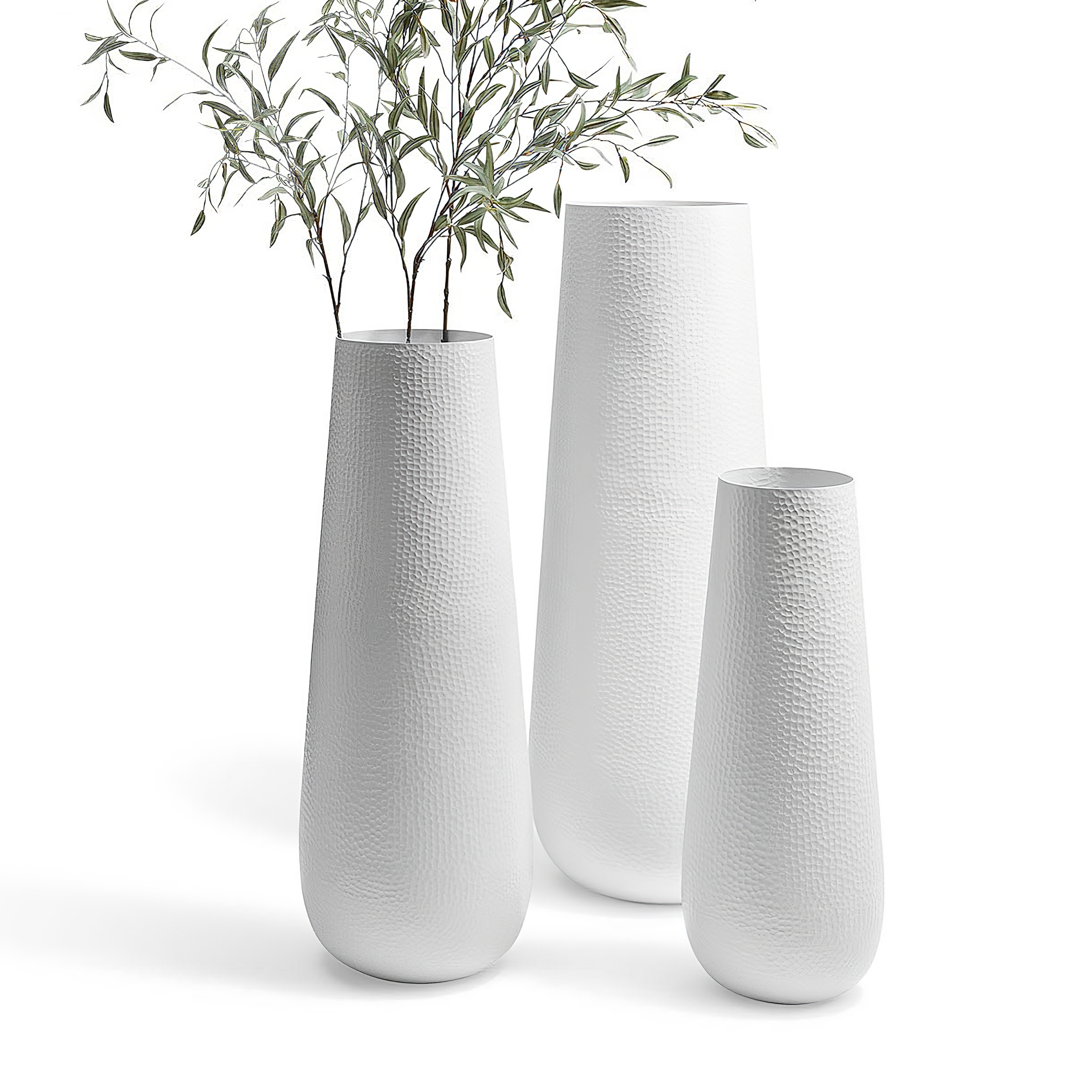 Weiße Outdoor Vase aus Aluminium - modern & rund - Louis Weiß / 100cm