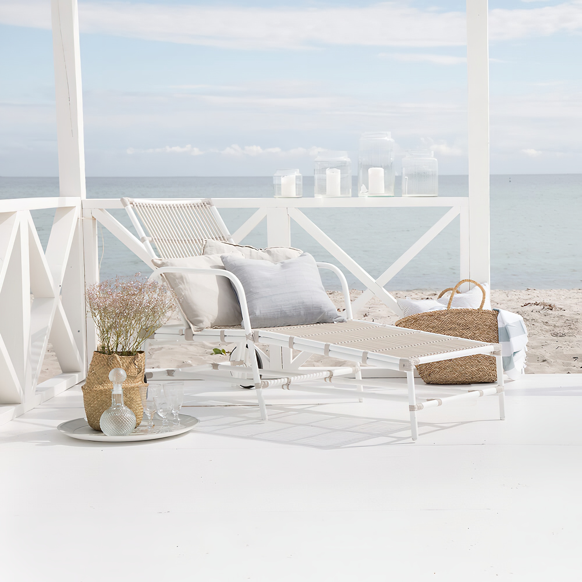 Weiße Sonnenliege aus Alu-Rattan mit Rollen - Sonnenliege Gerda / ohne Kissen