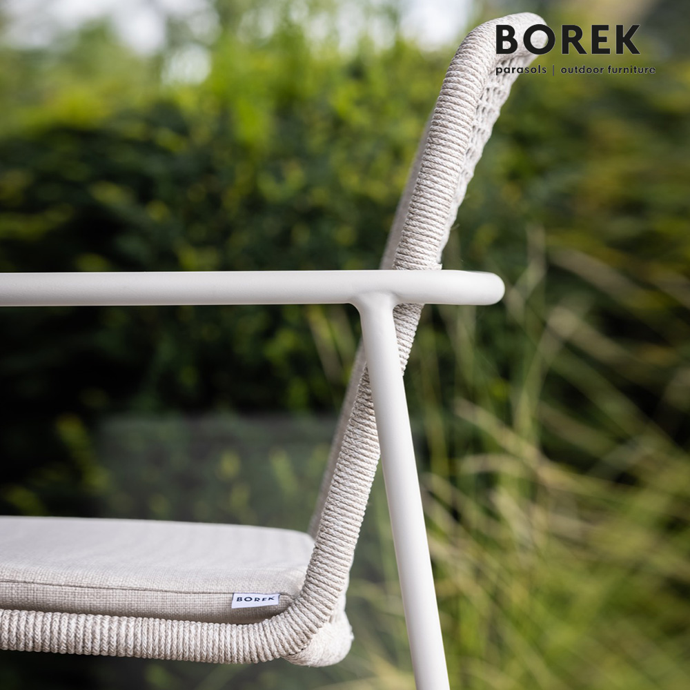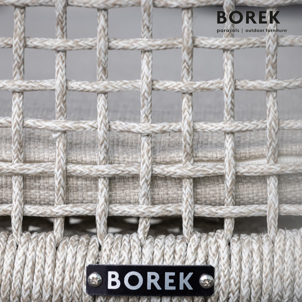 I mobili da giardino del produttore Borek si distinguono per la loro robustezza duratura e un design contemporaneo. La struttura dei mobili è realizzata in una lega di alluminio di alta qualità, verniciata a polvere a 180 gradi. La poltrona da giardino è resistente al gelo e al calore, oltre che facile da mantenere. Oltre alle sedie da giardino, il produttore offre anche mobili lounge, lettini da giardino e ombrelloni, che potete ordinare comodamente nel nostro shop online. La corda Ardenza può essere pulita con il Borek Fabric Cleaner e protetta con il Borek Fabric Protector.