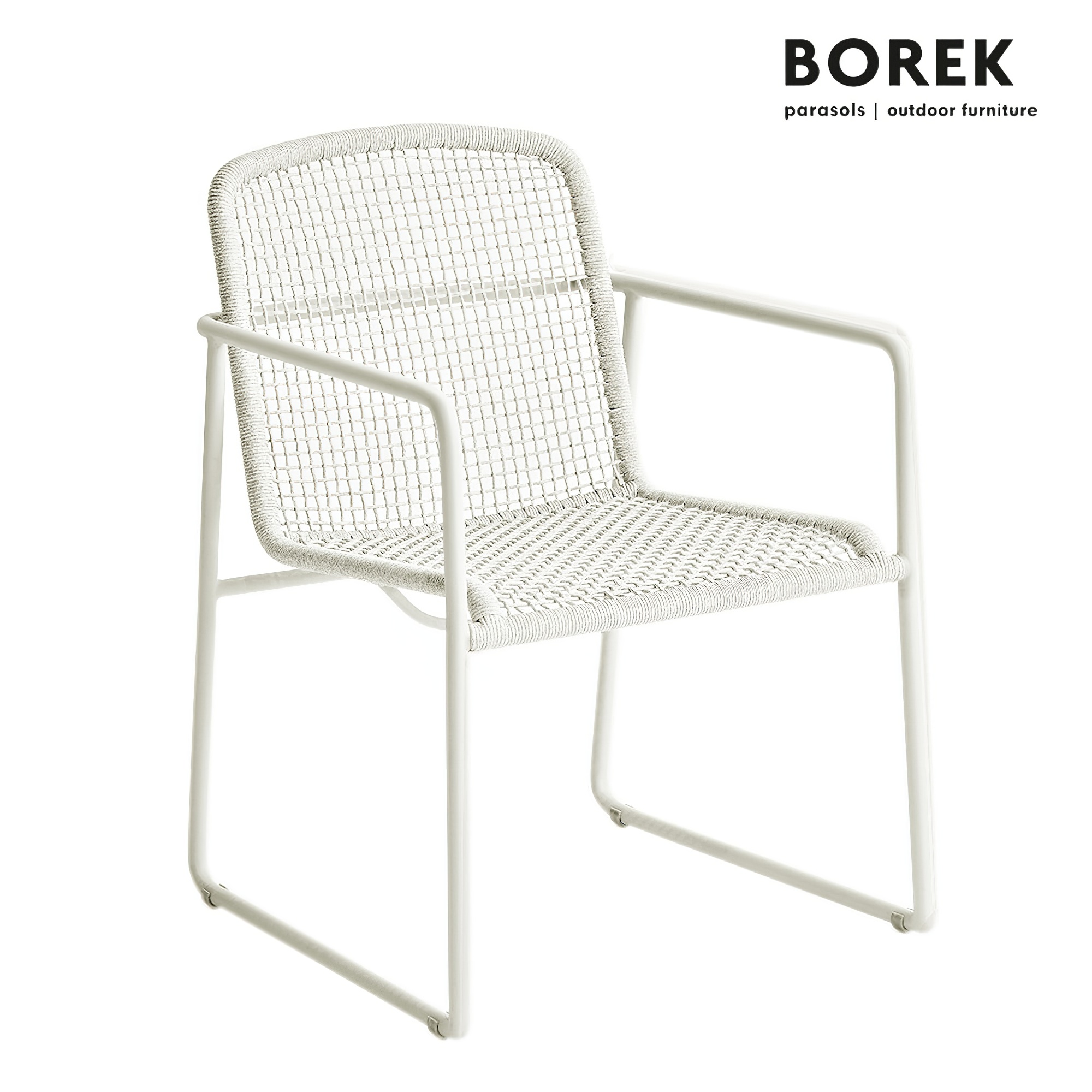 Weißer Gartenstuhl aus Aluminium mit Armlehnen von Borek - Mira Stuhl / ohne Sitzkissen