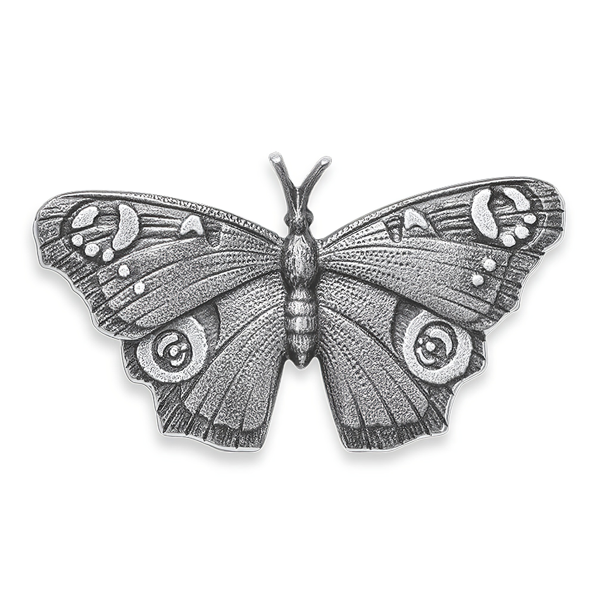 Wetterbeständige Wanddekoration - Tagpfauenauge aus Aluminium - Schmetterling Adelia / Aluminium hellgrau / 6,5x11,5x1,5cm (HxBxT)
