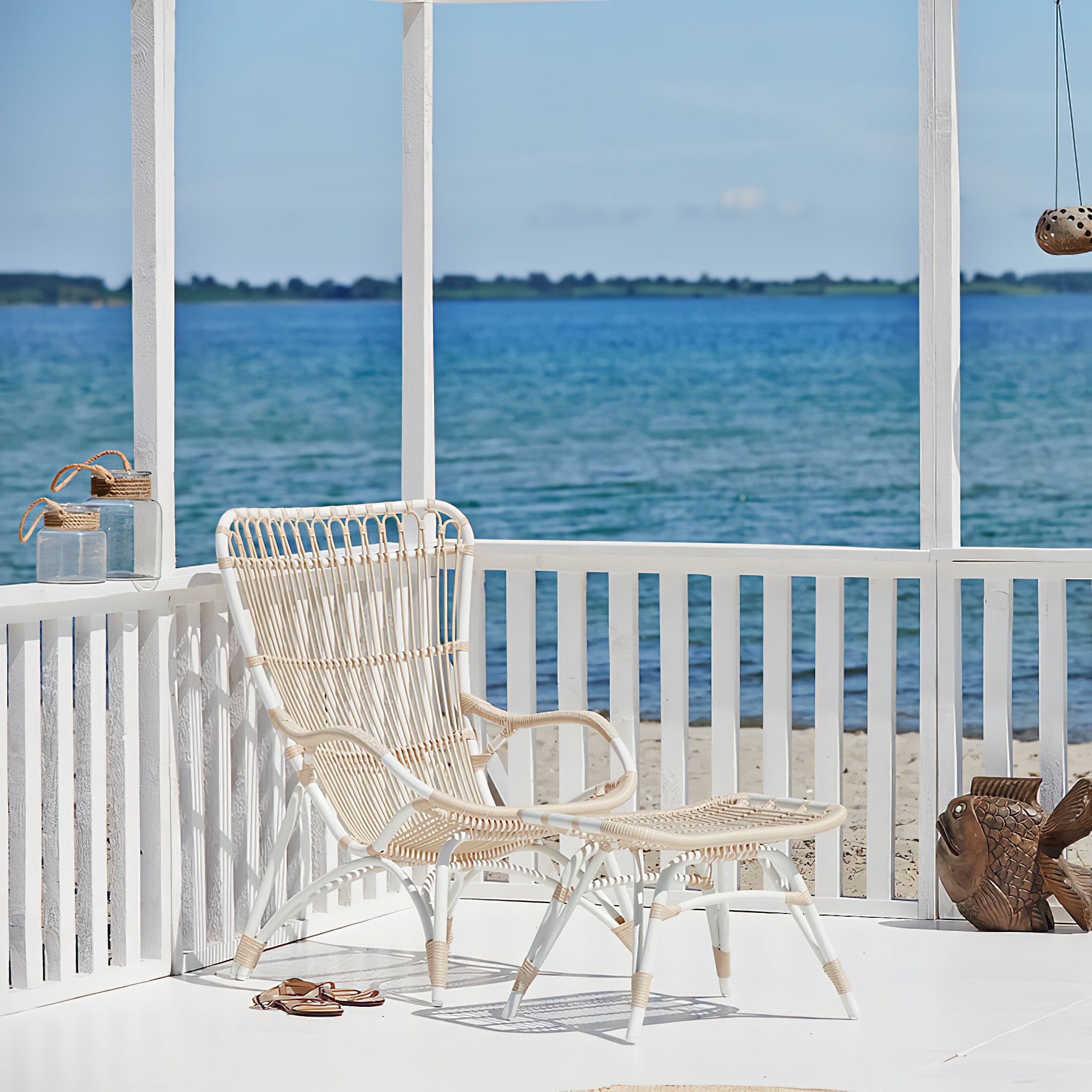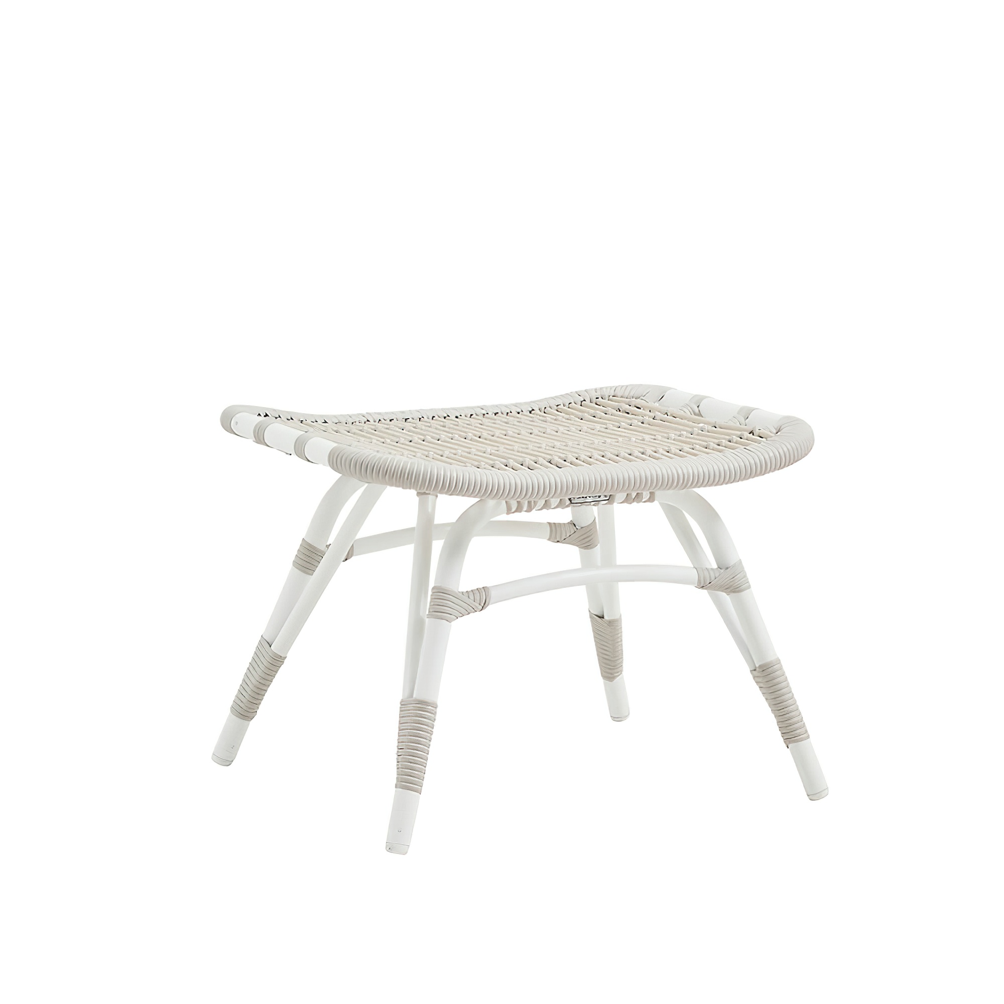 Wetterfeste Fußbank in Weiß mit Rattan-Look - Fußbank Elina / ohne Kissen